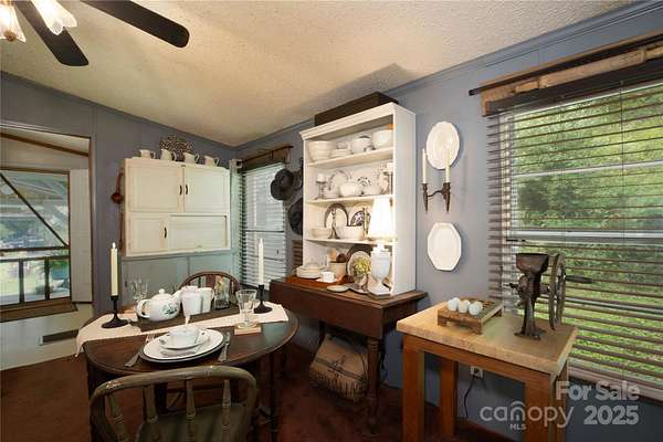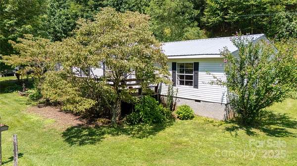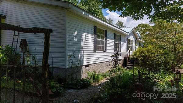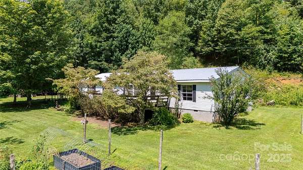 Discover mountain self-sufficiency on this 3.13+/- acre property featuring a 3BR/2BA manufactured home with both a fireplace and wood-burning stove. A bold creek runs through the land, providing a peaceful setting and natural resource. The property is served by a gravity-fed water system from a spring, ensuring running water without reliance on power. Ideal for homesteading or prepping, the land already produces a variety of vegetables and fruit trees, offering a head start on sustainable living. With room to expand gardens, add animals, or simply enjoy the tranquility of your private acreage, this property combines comfort with independence. Whether you're seeking a mountain retreat or a self-reliant lifestyle, this home and land provide the perfect foundation. The only limit is your imagination. Must be accompanied by a NC licensed Real Estate Agent.