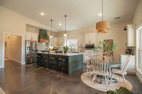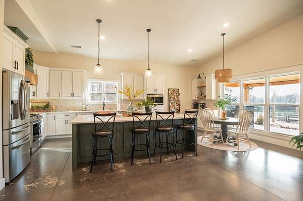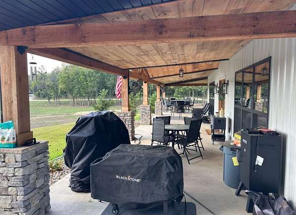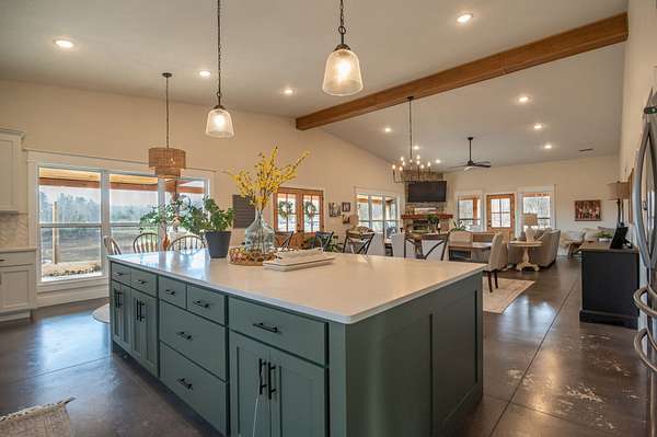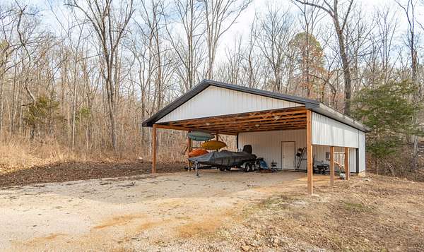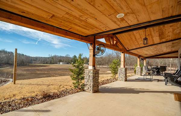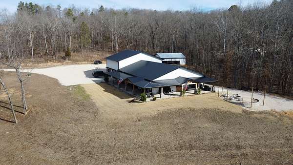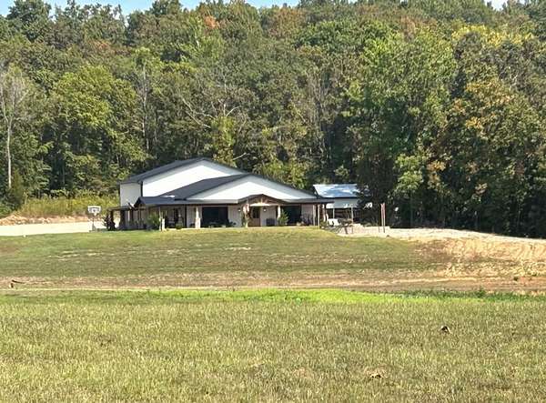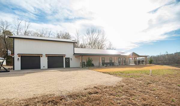 614 Water Tower Road: Premier Ozark Barndominium with Private Pond & River Access- Discover the ultimate in Ozark living at 614 Water Tower Road, a stunning 5-bedroom, 4-bathroom built in 2023 and situated on over 10 acres in Van Buren, Missouri. This is a rare find, featuring a private, stocked pond right in your front yard and deeded access to the crystal-clear Current River just a "stone's throw" from the property corner. The main residence is designed for seamless, no-stairs living and boasts premium finishes throughout, including a custom kitchen with quartz countertops and premium cabinetry that flows into a large family room anchored by a cozy fireplace. The master suite is a true sanctuary with an expansive master bath, while the inclusion of a self-sufficient in-law apartment adds incredible versatility for guests or multi-generational living. Security and entertainment are paramount here, featuring a fully finished concrete safe room with custom built-ins and a dedicated "man room" for collectibles. The exterior of this property is built for the true outdoorsman and entertainer alike. Over 1,600 square feet of covered porch space offers the perfect setting for hosting large groups or relaxing around the fire pit under the stars. Storage is never an issue with the 18-foot-tall garage equipped with jack-shaft doors, offering enough height for boats, RVs, and additional bunk room / hangout area tucked above the rear of the garage. Located just minutes from the heart of Van Buren, you are perfectly positioned at the gateway to the Ozark National Scenic Riverways, Big Spring, and thousands of acres of National Forest. Whether you are seeking a recreational retreat or a low maintenance full-time residence, this property offers unparalleled proximity to Missouri's most famous spring-fed river and surrounding state parks.