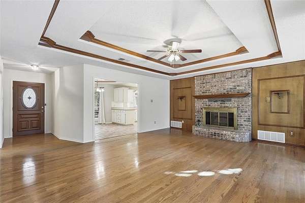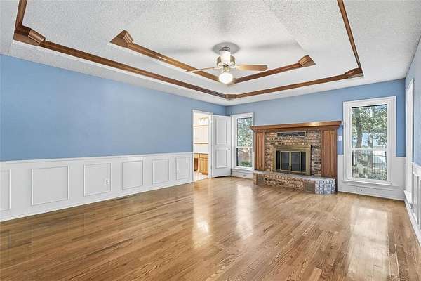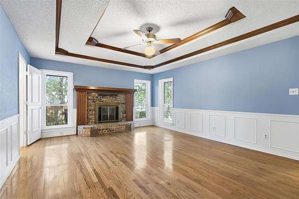 Welcome to your dream home, nestled on 2.62 beautiful acres in an incredibly convenient location! You'll love being close to schools, shopping, and the metroplex. This adorable house greets you with a charming gated circle drive and a cozy front porch, perfect for relaxing after a long day. Triple pane windows throughout make energy efficiency amazing! Inside, the inviting living area features warm wood floors and a wood-burning fireplace, making it the ideal spot for cozy winter nights. The bright kitchen is a true delight, boasting an island, stainless steel appliances, and plenty of cabinets and counter space for all your culinary adventures! You'll adore the spacious primary suite, complete with its own fireplace and an ensuite bath that has a jetted tub, separate shower, dual sinks, and a skylight to brighten your day! There's also an additional bedroom downstairs for convenience, while upstairs you'll find two more comfy bedrooms that share a cute bathroom. The huge great room is a versatile space that can become your media haven, craft room, or game room--whatever fits your lifestyle! Step outside to the peaceful back patio, where you can sip your morning coffee and enjoy the sounds of nature among the trees. Plus, there's a separate workshop with electricity, along with extra storage for your lawn equipment. Nine station sprinkler system perfect for keeping your landscaping blooming beautifully! This charming home truly has it all and is ready for you to create wonderful memories! Don't miss the chance to make it yours!