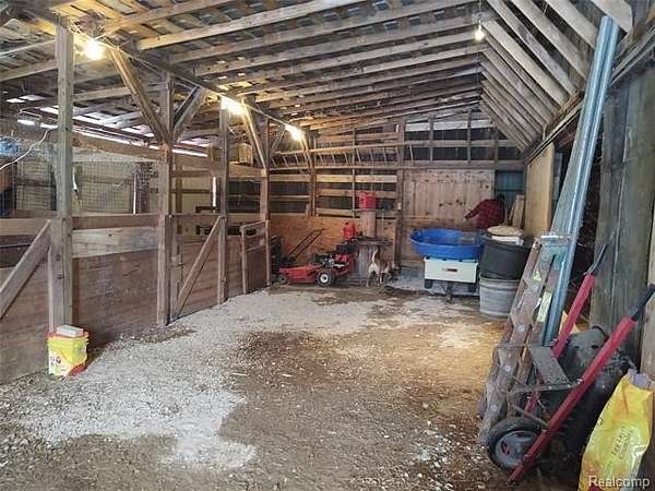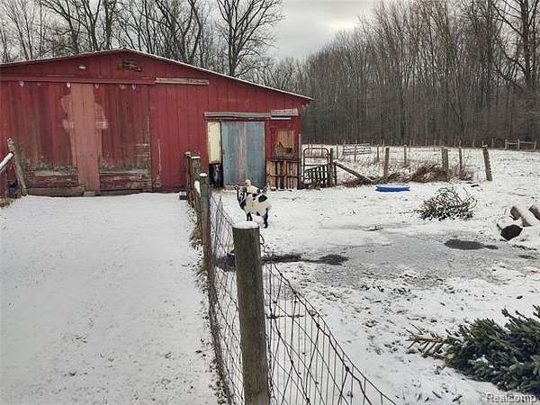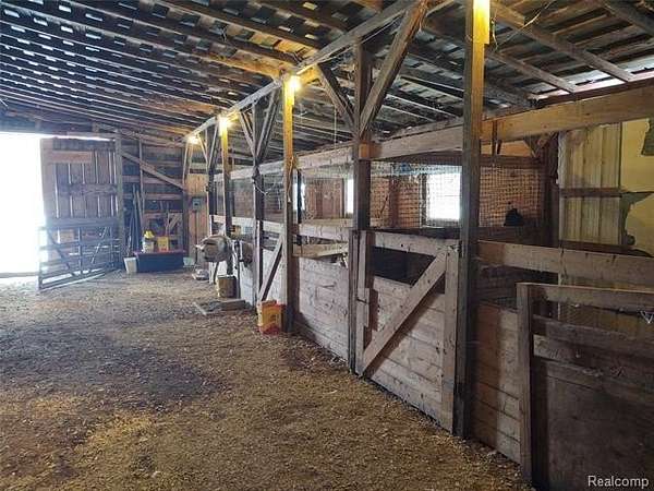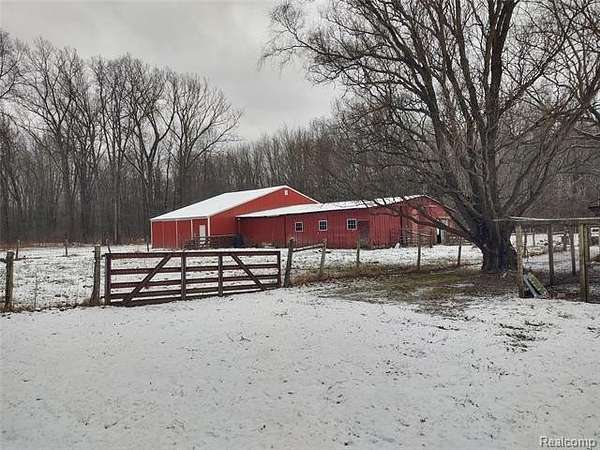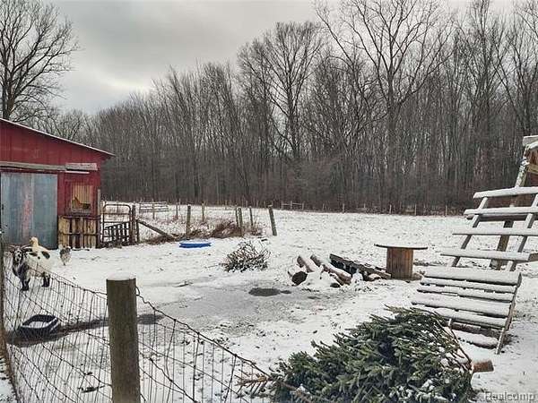 Ranch style home located on 7 acre's featuring large barn with 4 horse stalls and large fenced area for your farm animals to roam. Attached to the barn is a large Pole Barn for your toys as well as an oversized 2.5 car garage near the home with 220 and 2 large roll up doors. This property also features a large fenced in area for your chickens to roam. City water is at the street and Natural Gas is available at the house. Seller will be taking all of the farm animals with them to their new home. If you want Country living this may be what your looking for. Property is about 40% partially wooded and has a nice country feel to it.