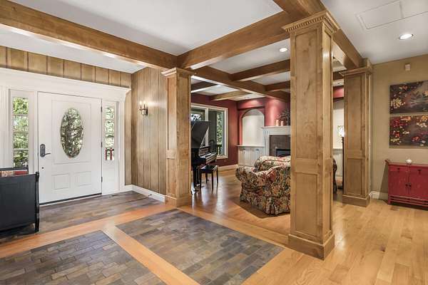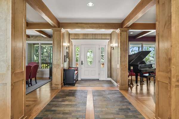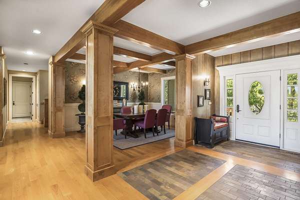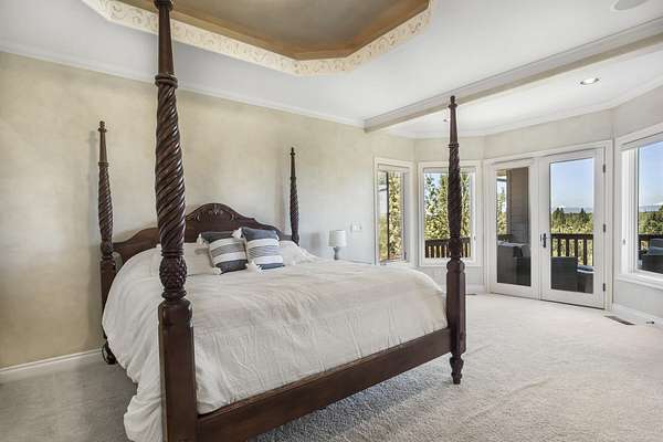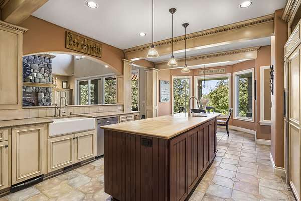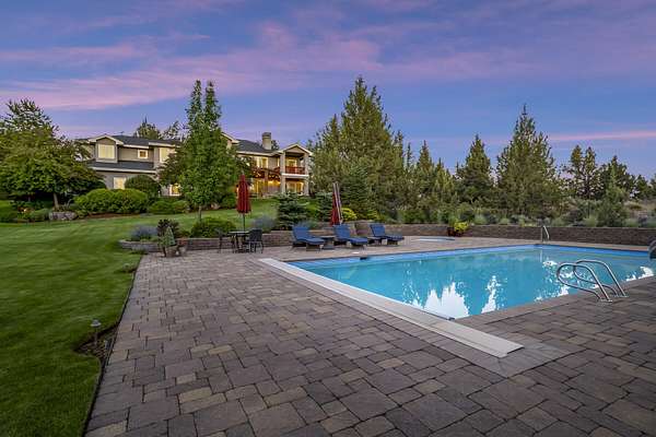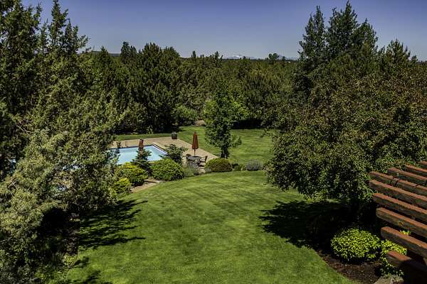 Absolutely stunning SE Bend acreage showcasing breathtaking Cascade views. Thoughtfully built by Wilcox Construction and situated on nearly 10 acres, including 3 acres of irrigation, this property offers the perfect balance of privacy, beauty, and functionality. Open floor plan features soaring vaulted ceilings, rich wood accents, extensive built-ins, and a dramatic gas fireplace. The chef's kitchen includes a spacious island, stainless steel appliances, granite counters, breakfast bar, pantry, and both formal and informal dining areas. The primary suite is a peaceful retreat with a private balcony, custom built-ins, and spa-like bath with tiled shower, jetted soaking tub, and walk-in closet. A second-story bonus room, secluded study, and formal living room provide comfort and flexibility. Outdoor living complete with a huge shop, detached flex building, greenhouse, swimming pool, hot tub, covered and paver patios, pergola, fireplace, and lush landscaping and just minutes to town.