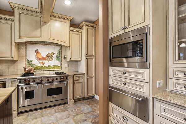 - Dishwasher, Disposal, Instant Hot Water, Microwave, Oven, Range, Range Hood, Refrigerator, Water Heater, Wine Refrigerator