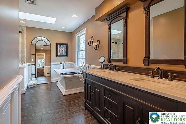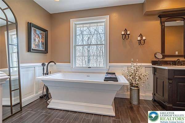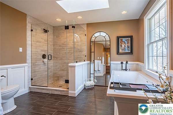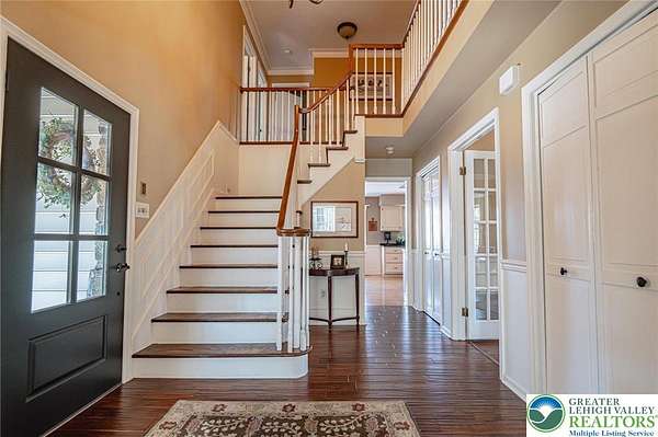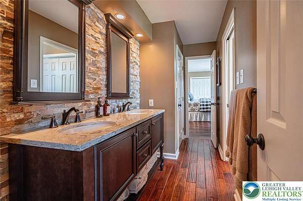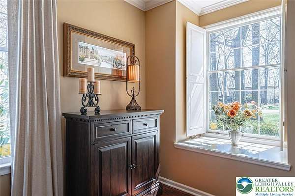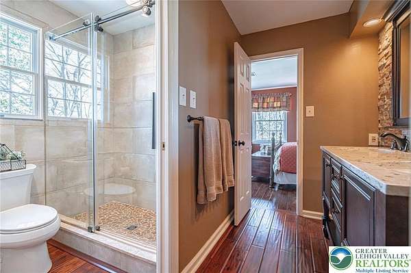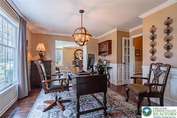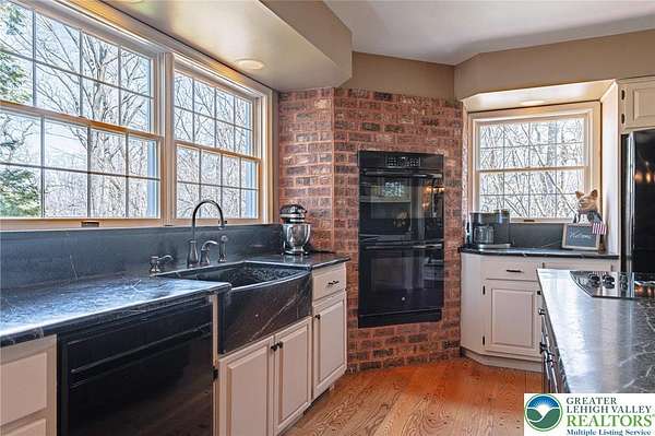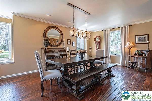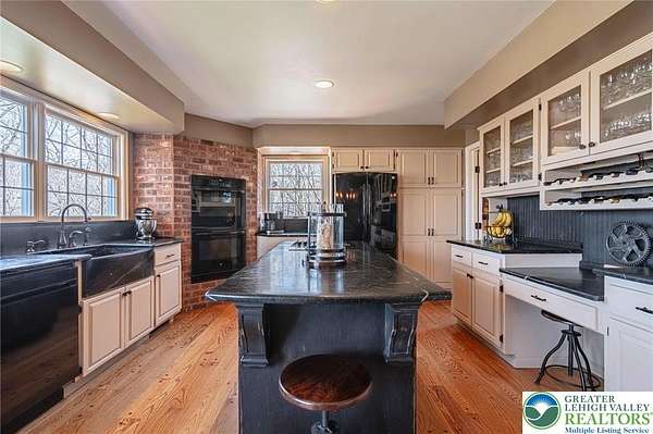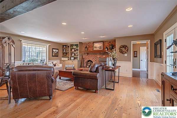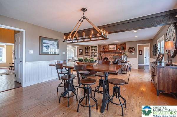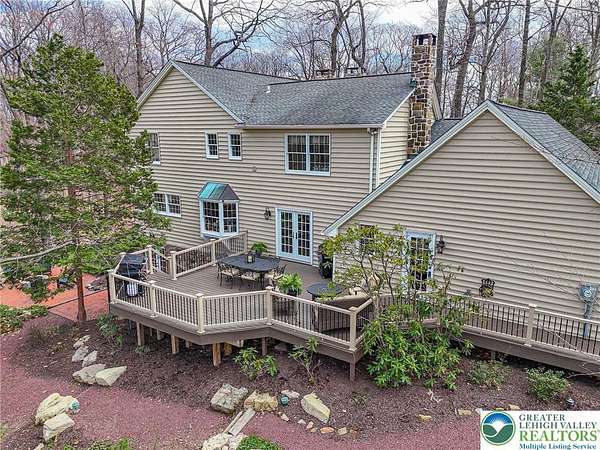 Set on a serene 1.5-acre wooded lot, Woodledge blends timeless farmhouse character with a setting that feels both peaceful and inviting. Surrounded by nature and wildlife, and located within an established neighborhood of custom homes in the highly desirable Parkland School District, this property offers a rare balance of privacy and connection-just minutes from everything you need. Rich in character and craftsmanship, the home showcases teak and pegged oak flooring, detailed moldings, wainscoted walls, deep windowsills with interior shutters, and three fireplaces-creating warmth and architectural interest throughout. The main level offers a flexible and inviting layout, with the current dining room positioned in the original living room space, and a private office in the original dining room-ideal for today's lifestyle. The heart of the home flows seamlessly through the family room, kitchen, and breakfast area, highlighted by a dramatic floor-to-ceiling brick fireplace and a beautifully updated kitchen featuring soapstone countertops, island, new appliances, and fixtures. This central gathering space opens directly to the composite deck, making indoor-outdoor entertaining effortless while overlooking the peaceful wooded surroundings. Offering 4 bedrooms and 3.5 baths, the home provides both comfort and space. The primary suite is a true retreat, featuring a beamed cathedral ceiling, fireplace, and a completely renovated spa-like bath with soaking tub. The second full bath and powder room have also been completely remodeled, providing a fresh, modern feel. The finished walkout lower level adds valuable living space, complete with a full bath and additional storage areas, and opens to the outdoors where a patio with fire pit invites relaxing evenings surrounded by nature and wildlife. A 3-car garage adds convenience and ample storage. This home has been extensively updated and meticulously maintained-please refer to the attached list of improvements for full details. Thoughtfully cared for and ideally positioned, Woodledge offers a rare opportunity to enjoy a private wooded setting with a true neighborhood feel-a home designed for everyday living, entertaining, and making lasting memories.
