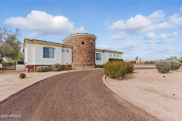 Welcome to the Wild West! If you are an equine enthusiast or a person that values your space, this may be the home for you. 4 bed, 3 bath will suit most families plus an office that allows you to work from home. Situated on a 2.2-acre corner lot, this home has 4 horse facilities with a round riding pen. You enter the home through the stone covered turret featuring a custom steel/glass door & immediately met with a colossal great room. It is built for entertaining with ample space both inside & out to host. The open layout features a split floor plan, gourmet kitchen with granite counters, gas fireplace in the great room & a spacious master suite with direct entrance to the backyard patio. Additional features include a four-car detached /workshop, 3 stall horse barn & an arena.