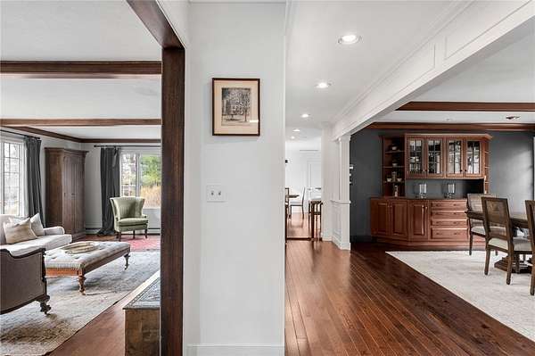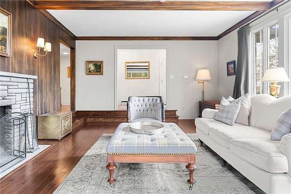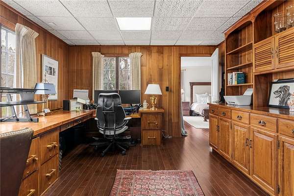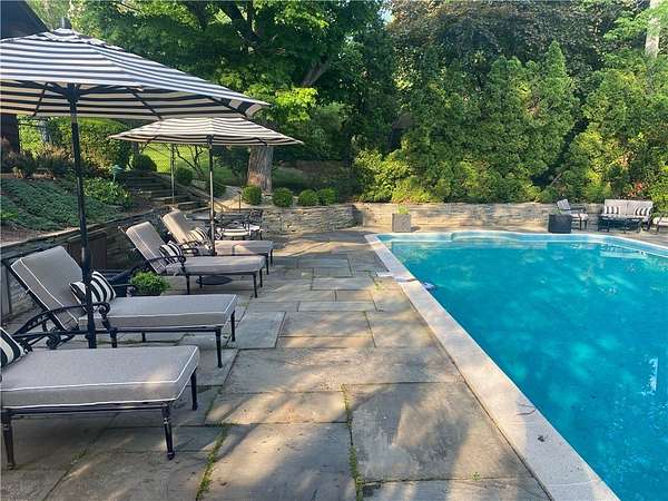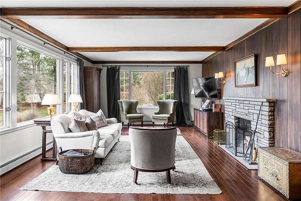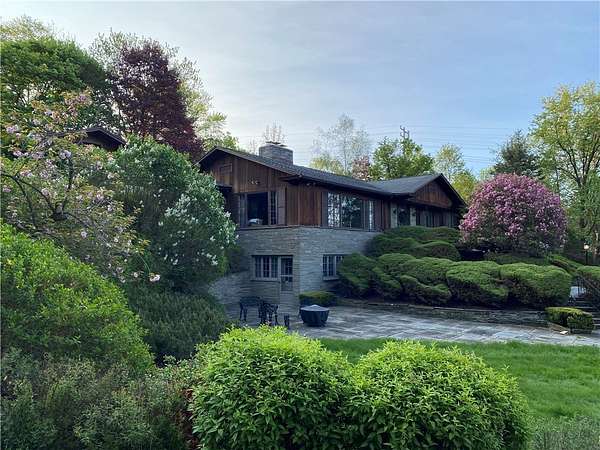 Properties like this rarely come to market-set on two beautifully landscaped acres in highly sought-after Cayuga Heights. This exceptional 1958 cedar and stone home has been thoughtfully renovated to blend timeless character with extensive modern updates throughout. The sprawling ranch design features a dramatic sunken living room, an inviting eat-in kitchen with a cozy fireplace, and a formal dining room that opens seamlessly to a stunning stone patio-perfect for indoor-outdoor living. The kitchen has been beautifully updated with new quartzite countertops, refinished cabinetry, and new appliances, offering both style and functionality. The spacious primary suite offers a private retreat with a walk-in closet, full bath, and dedicated private office. All three full bathrooms on the main level have been completely remodeled with high-end finishes, and an additional half bath has been thoughtfully added for convenience. Additional bedrooms include a Jack-and-Jill bath connecting two rooms, as well as a separate guest suite with its own ensuite bath. The lower level provides incredible flexibility with a large playroom or entertainment space complete with a built-in bar, a generous exercise room, and an adjacent steam room for ultimate relaxation. Outdoors, enjoy a private in-ground saltwater pool surrounded by a stone patio, all set within the serene and expansive grounds. Located just minutes from Cornell and downtown Ithaca, this is a rare opportunity to own a truly special, move-in-ready property in one of the area's most desirable locations.
