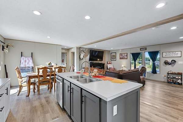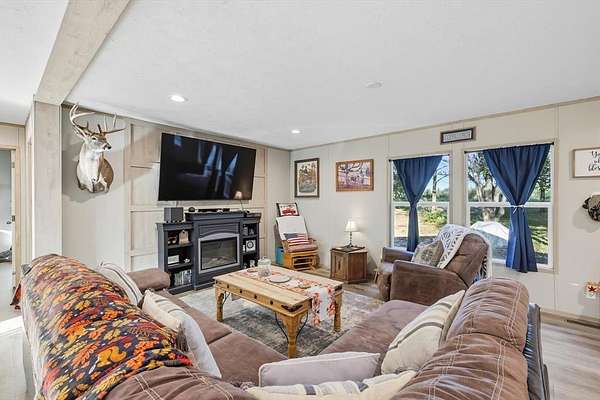 Welcome to this 2024-built manufactured home offering modern comfort and country charm. Featuring 3 spacious bedrooms and 2 full bathrooms, this home provides a functional split-bedroom layout with an open-concept living, dining, and kitchen area—perfect for both everyday living and entertaining. The kitchen is a true highlight with a large island for extra seating and prep space, plus a dedicated spot ideal for a coffee bar or beverage station. The home provides ample storage areas, as well as walk-in closets in every bedroom. The seller has added full gutters onto the home. Sitting on just under 2 acres of land, there’s plenty of space for outdoor activities, gardening, or simply enjoying the peace and privacy of your own property. The owners added full gutters around the whole home shortly after purchasing. The home is in great condition, move-in ready, and designed for easy living with contemporary finishes and country lifestyle. Whether you’re looking for your first home or to move to the country for more privacy, this property blends the convenience of modern living with the freedom of extra space.