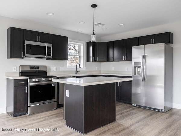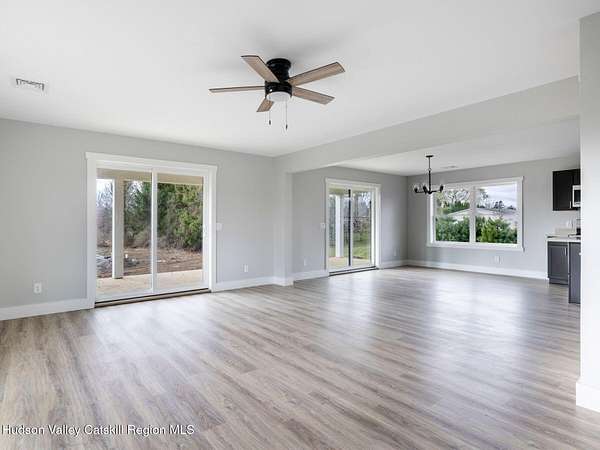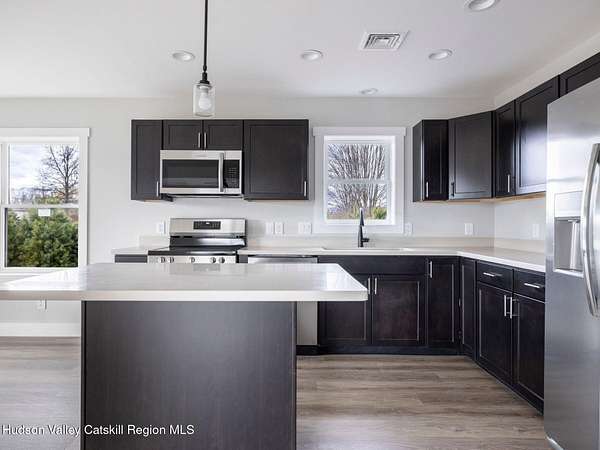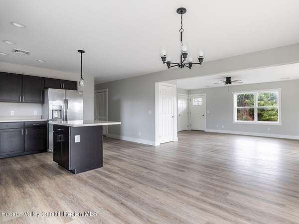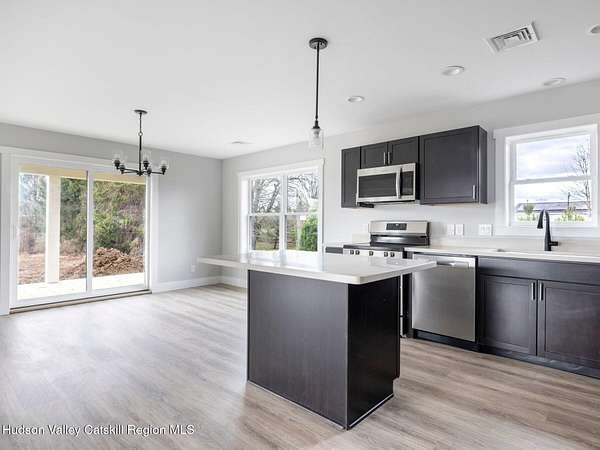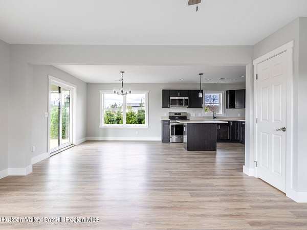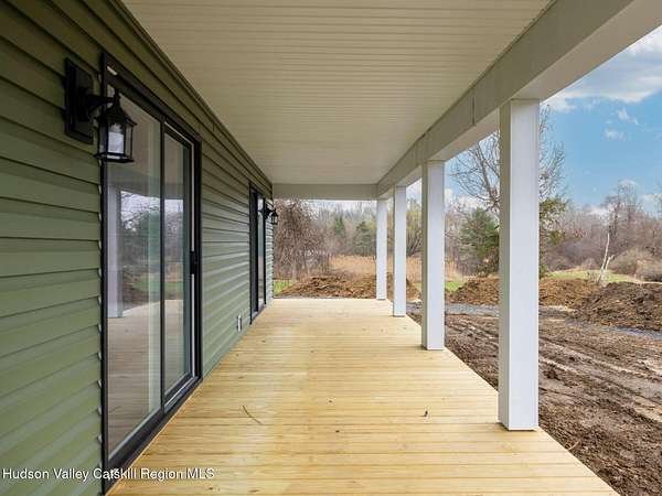 Welcome to this brand-new ranch-style home located at 615 County Route 6, Clermont, NY. Designed for easy one-level living this thoughtfully built home offers comfort, efficiency, and modern finishes throughout. The main level features a spacious and functional layout with three bedrooms and two full bathrooms including a private primary suite with its own full bath. The open-concept living area flows seamlessly into the kitchen and dining space creating an ideal setting for both everyday living and entertaining. The kitchen is beautifully designed with Corian countertops and stainless steel appliances by Frigidaire combining durability with a clean modern look. Step outside to enjoy the rear deck perfect for relaxing or hosting guests. A full unfinished basement provides excellent potential for additional living space, storage, or a future recreation area. It includes a high-efficiency Bosch water heater and Bilco doors for convenient access to the yard. With its generous space and layout, the basement can be easily finished to suit your needs. This move-in-ready home is a fantastic opportunity for buyers seeking new construction with room to grow. Located 10 minutes to downtown Red Hook, 20 minutes to downtown Rhinebeck and the train station. A 3D Walkthrough Tour is available in the digital Lookbook or by request.
