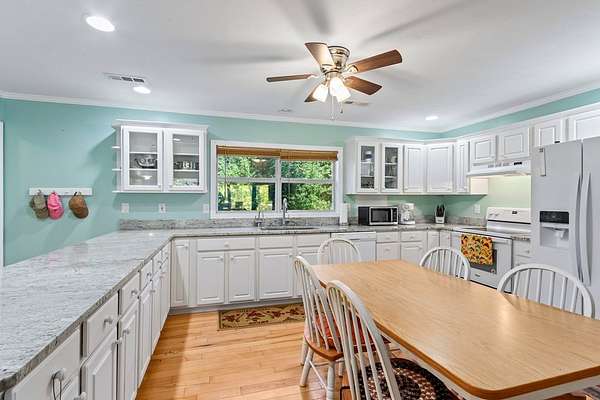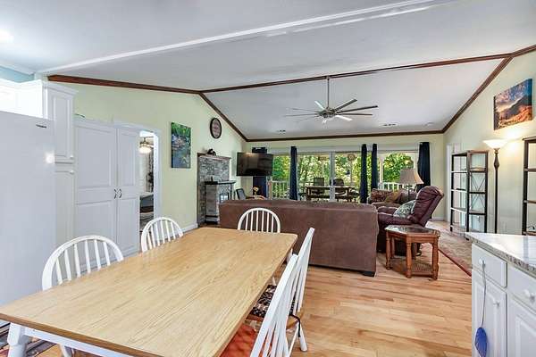 Best deal in town on this NOTTLEY RIVER PALACE - Brand new HVAC being installed now. 1.45-acre estate nestled along the serene and dam-protected Nottley River, this River Palace is more than just a house--it's a lifestyle. This 3-bedroom, 2-bath property spans 1,450 sq ft of living space. The backyard has deluxe landscaping and ornamental trees with your very own dock and boat landing. Walk down the stairs to the water for trout fishing or kayaking. The generous lot is perfect for outdoor activities, making it ideal for families or anyone seeking a peaceful retreat. Upon entering, you are greeted by an open floor plan that seamlessly connects the large kitchen and living area. The kitchen boasts granite countertops, ample cabinets and storage space. The living room is a showstopper with a deluxe electric fireplace and a vaulted ceiling. Updates include real hardwood floors, ceiling fans, light fixtures, toilets, mini blinds, black out curtains and crown molding throughout. Three spacious bedrooms each with ample closet space. Primary suite features a jetted tub and attached laundry closet. Two additional bedrooms share bath with a walk-in shower. Expansive 12x60 porch overlooking the river, equipped with a TV, stereo, pool table, Ping Pong, dartboard, and generous seating. Additional storage is available in the large space underneath the home, complete with a workshop area, shelves, benches, and a locked utility room featuring electric and motion lights and parking for 5 cars. High-speed internet through BRMEMC. Handicap friendly front steps and a covered seating area. This home comes fully furnished, allowing you to move in and start enjoying your new lifestyle right away. River Palace is not just a place to live; it's a private haven where every day feels like a vacation. Don't miss your chance to own this slice of paradise on the Nottley River. Come and experience the magic of River Palace--schedule your private showing today!