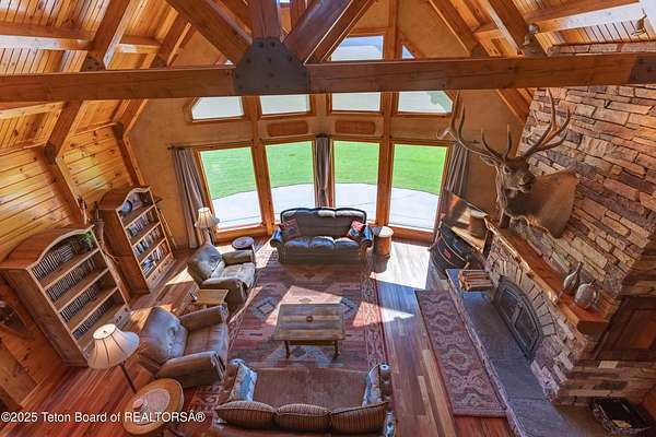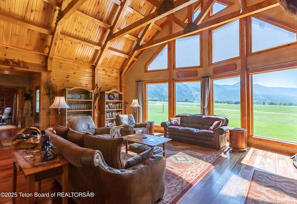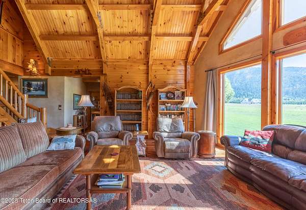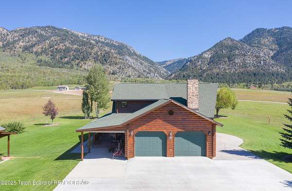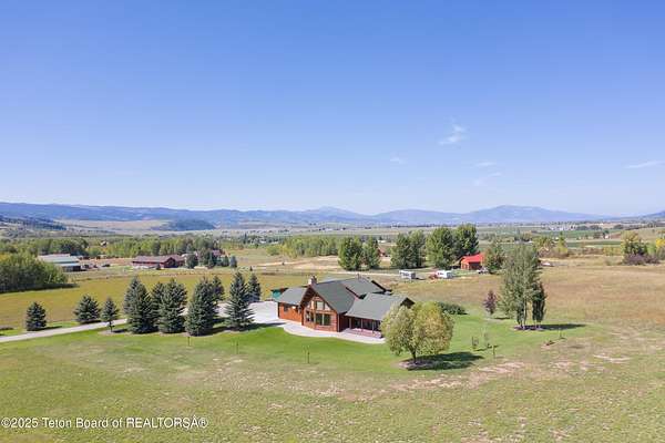 A Haven in the Hidden Valley of Bedford, WY! Tucked peacefully away against the majestic mountains you'll find this dream cabin on almost 15 acres of wide open, private space. An Aviator's paradise with a small grass runway within walking distance. This 3 level home is approx. 3,874 sq.ft. with 4 bedrooms, 4 bathrooms, and a bonus room. Attached 2 car garage and detached 40 x 30 shop, both finished and heated. RV lean to and extra storage sheds. Mature trees and beautifully landscaped lawn complete with a flag pole out front. The massive mountain views and the clear night skies makes this the perfect outdoor retreat with national forest just a few miles away for excellent hunting, fishing, and the best snowmobiling right out your back door! No CCRs for endless Wyoming wanders!