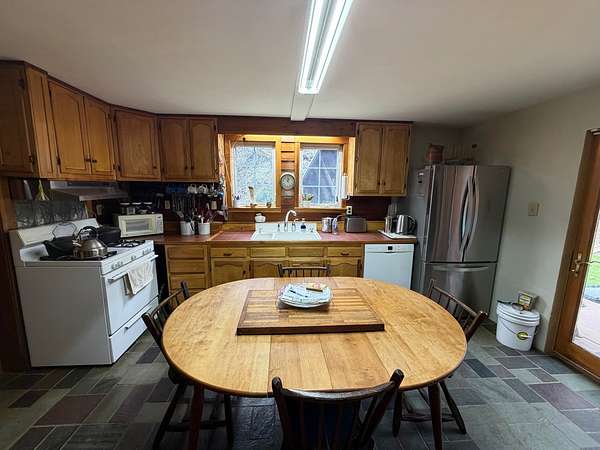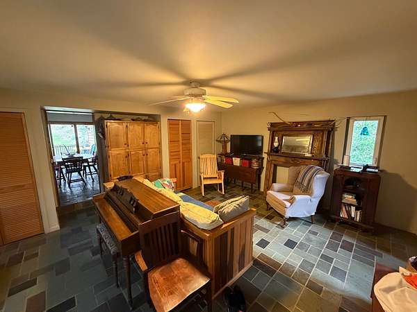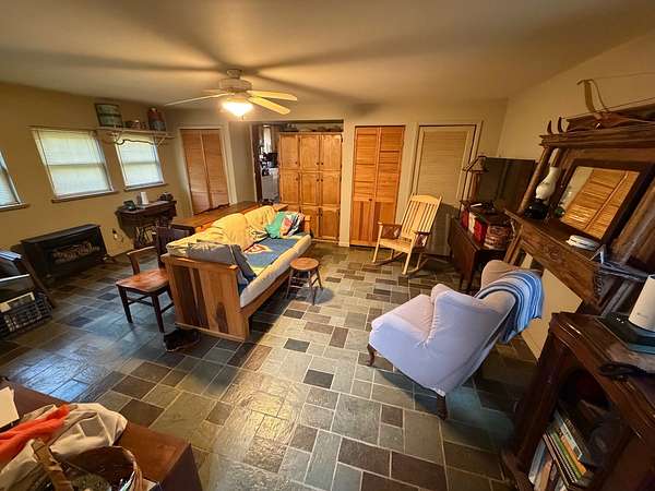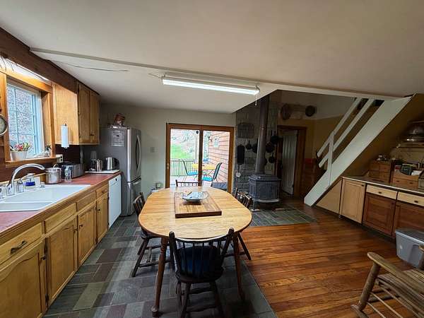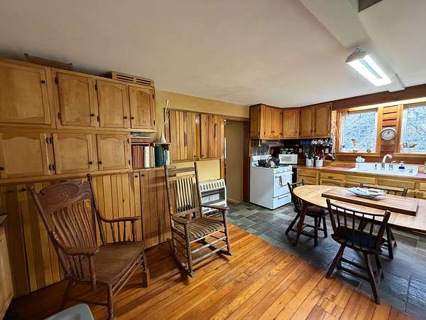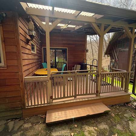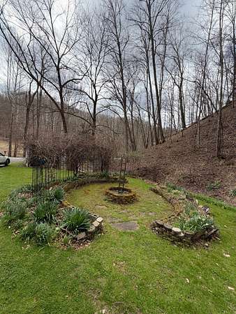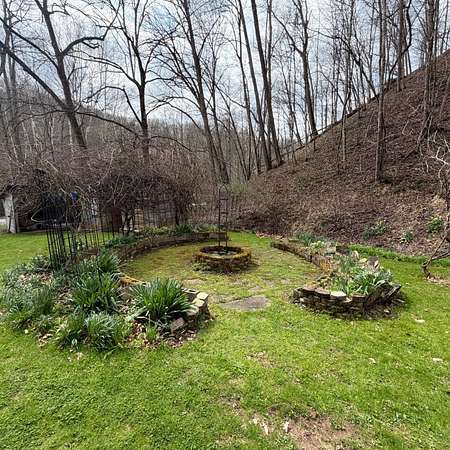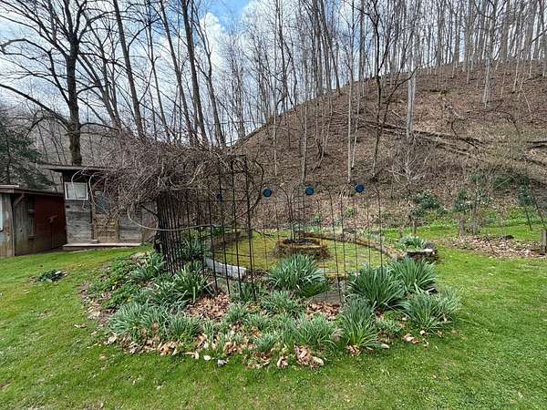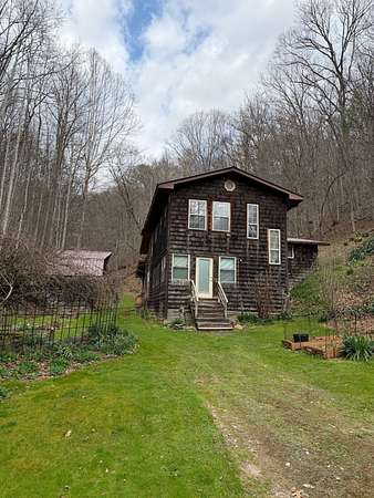Tucked away in a peaceful West Virginia hollow on nearly 10 acres, this private 2-story homestead offers a rare blend of natural beauty, self-sufficiency, and quiet seclusion. Surrounded by mature trees with no neighbors in sight, the setting provides exceptional privacy while naturally protecting your water source. The home features classic cedar shake and cedar clapboard siding, blending seamlessly into its surroundings. Inside, you'll find a warm and inviting mix of hardwood, tile, and laminate flooring. With 2 bedrooms upstairs and an additional room currently used as a bedroom (no closet), there's flexible space for guests, office, or hobby use. A full bathroom on each floor adds convenience for everyday living. Designed with a homesteading lifestyle in mind, the home is primarily heated by a wood stove, with a propane wall heater for backup. Step outside to enjoy established garden beds, thoughtfully curated herb and flower gardens, and a landscape that comes alive in the spring-highlighted by a bubbling brook lined with blooming daffodils. The covered back porch with a clear roof is the perfect place to relax, unwind, and take in the serene surroundings year-round. If you're seeking a quiet retreat, a working homestead, or simply a place to reconnect with nature, this one-of-a-kind property delivers.