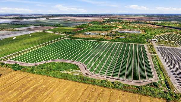 77.92 acres of improved agricultural land with full utility infrastructure in place. Offered as two contiguous parcels, this turnkey farm includes approximately 400,000 sq ft of steel-constructed greenhouses with computerized drip irrigation, 40 acres of open fields on highly productive "Immokalee Gold" soil, and a three-phase electrical system. Three permitted 130-foot wells draw from the underlying aquifer to provide abundant fresh water for irrigation or future development needs.