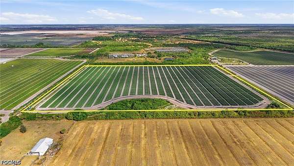 This 77.92-acre improved agricultural property offers a rare opportunity to acquire a fully operational, turnkey farm with extensive infrastructure already in place. Offered as two contiguous parcels, the property includes approximately 400,000 square feet of steel-constructed greenhouses equipped with computerized drip irrigation, along with 40 acres of open fields set on highly productive "Immokalee Gold" soil. The farm is well supported with a three-phase electrical system and three permitted 130-foot wells, providing an abundant and reliable water supply for irrigation or future development needs. Multiple functional structures are already on site, including a 4-bedroom, 2-bath concrete residence, a manager's apartment, office space, and a packing/warehouse facility featuring a 1,200-square-foot cooler and loading docks. Florida AG zoning allows for agricultural expansion or additional greenhouse construction without further permitting, offering flexibility for continued operations or future plans. A surrounding moat and single-entry access road provide added privacy and natural security. Ideally located near Immokalee Regional Airport (7 miles), Ave Maria (10 minutes), Naples (25 minutes), and Fort Myers (45 minutes), this property is well suited for active cultivation, redevelopment, or the creation of a private estate compound. A unique opportunity to acquire large-scale, improved acreage in a highly productive agricultural area.