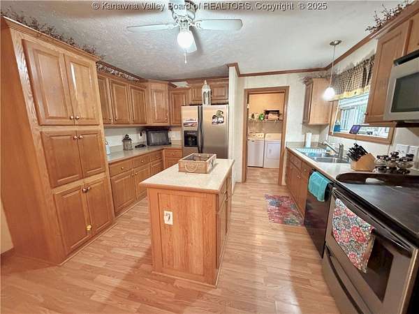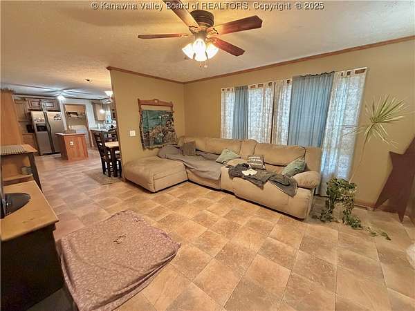 Situated on a newly surveyed 4.729 acres, this 2012 double-wide manufactured home offers everything you're looking for in an out-of-town location just minutes from everyday conveniences. With 1,716 SqFt, the home features 3 bedrooms and 2.5 baths, including a spacious primary suite with a walk-in closet, soaker tub, separate shower, and double vanity. The open kitchen and dining area includes stainless steel appliances-range, dishwasher, microwave, and refrigerator convey. A separate office and family room provide flexible additional living space. The fireplace is ready for propane hookup for backup heat. Outside, a 2-car detached garage with wood burner and lean-to offers excellent storage. The fully fenced front yard is ideal for pets or 4-H animals, while the cleared acreage behind the home allows for recreation, animals, or future use. Located just 5 miles from NUCOR WV with easy access to Huntington and I-64.