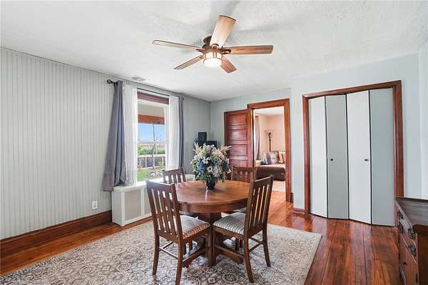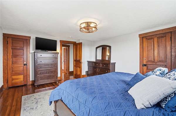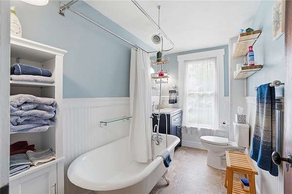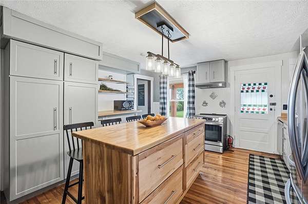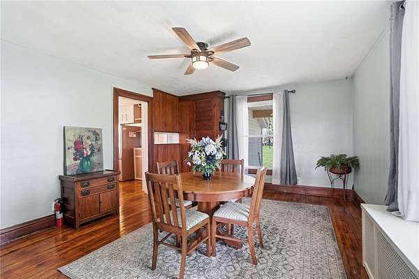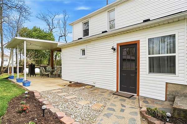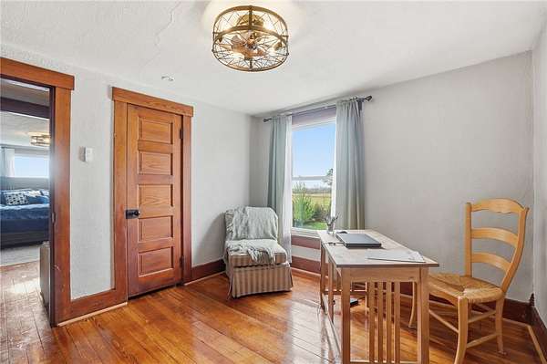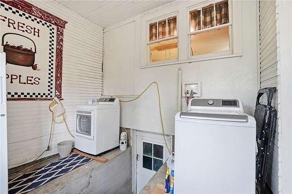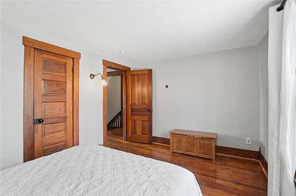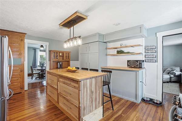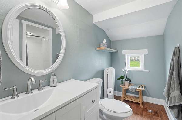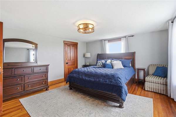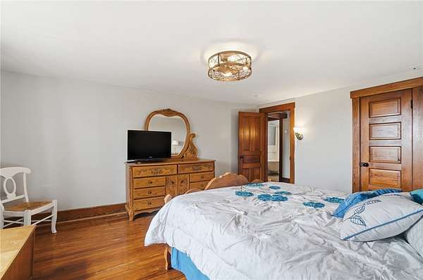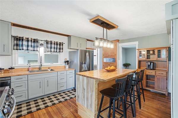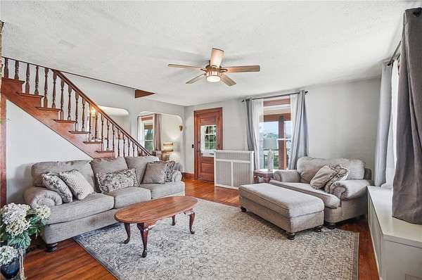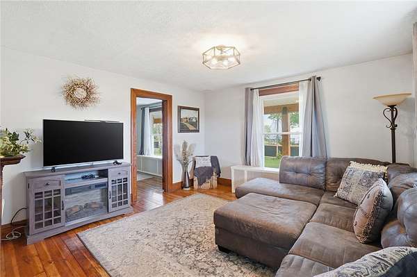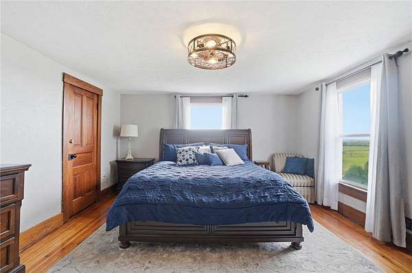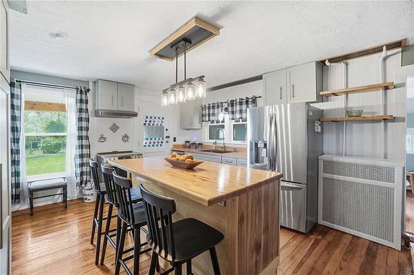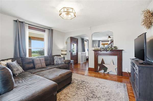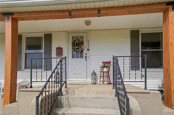 Picturesque American farmhouse with a wraparound porch, perfectly situated on 2.2 acres and offering exceptional privacy with a fully fenced yard, three barns/outbuildings and a pond. This charming home has been thoughtfully renovated while maintaining its modern farmhouse character, showcasing beautiful woodwork throughout. The kitchen features an abundance of cabinetry, a butcher block island, and plenty of space for gathering. The main level offers a formal dining room, living room, and family room, along with a full bath—providing flexibility to easily convert one of the living spaces into an additional bedroom if desired. Upstairs, you’ll find four spacious bedrooms and another full bath, while the third floor offers additional finished square footage with endless possibilities, including a bonus living area, bedroom, playroom, or study. Step outside to enjoy the covered back patio and peaceful surroundings. The property includes three barns, ideal for storage, hobbies, or equipment. Major updates include complete kitchen and main level full bath renovation, hardwood floor restoration, small barn paint & metal siding, large barn paint and rear metal siding, built and installed pond, major landscaping including 50 trees (including apple, peach, cherry and Asian Pear) & new flower beds, 3000 sf vegetable garden, 6ft fence - 3 sides - around entire property, front 4ft fence with gate, front porch fascia, new water pressure tank, newer vinyl siding, gutters, newer basement windows, updated electric and plumbing, newer well pump, water heater, water softener, and ceiling fans. Roof on home replaced in 2019, all three barn roofs were replaced in 2022, and the largest barn was structurally reinforced the same year. This truly one-of-a-kind property offers the best of both worlds—peaceful country living with the convenience of city amenities.