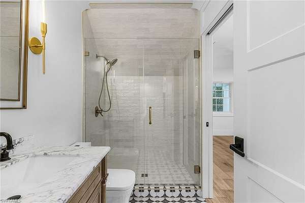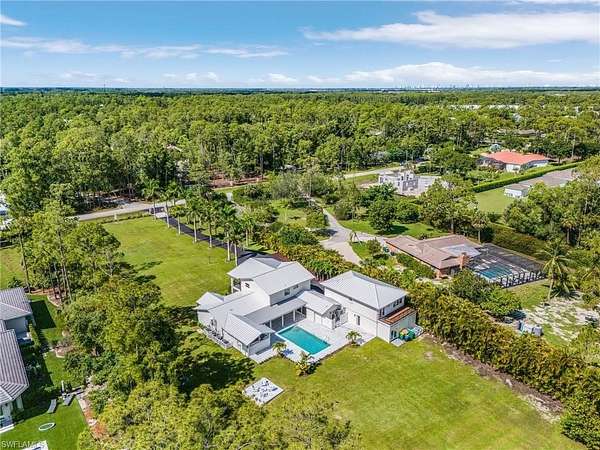 Welcome to 6155 Standing Oaks Ln, a breathtakingly reimagined estate located in the highly sought-after Oakes Estates of Naples. This exceptional 6-bedroom, 5-bathroom residence spans over 7,800 total sq ft and is situated on a private, gated 2.3-acre property that also includes a 2-bedroom, 1-bath guest house and an air-conditioned, designer-inspired "man cave" garage with a luxury full bathroom and nearly 1,000 sq ft of flexible space. This estate was fully renovated and blends timeless luxury with rock-solid construction and modern efficiency. It has crown molding, expansive windows with peaceful water views, and a bright, open layout. The chef's kitchen is outfitted with quartzite countertops, marble backsplash, luxury appliances, a large center island, and abundant cabinetry. Retreat to the luxurious primary suite with vaulted ceilings, custom built-in closets, and a spa-inspired bathroom with dual vanities, soaking tub, and oversized double walk-in shower. Step outside to your private lanai with a sparkling pool and acres of green space. The long, royal palm-lined driveway and lush landscaping create exceptional curb appeal, while the new 70-year rated metal roof adds both peace of mind and insurance benefits. A 500-gallon underground propane tank is already installed and ready to support a whole-house generator. Upstairs guest house has its own private entrance (also accessible via the garage), making it ideal for guests, extended family, a live-in housekeeper, or even as a vacation rental. The entire 2.3-acre lot makes this property the ideal self-sufficient compound - with no HOA restrictions. Add a workshop, plant a garden or fruit trees, raise animals, or build additional structures to suit your vision. Every inch of this home reflects thoughtful design and quality craftsmanship. This is more than a home - it's an extraordinary lifestyle opportunity in an A+ location and A rated schools. Whether you're looking for a family compound, private retreat, or legacy estate, 6155 Standing Oaks Ln delivers unmatched value, space, and freedo