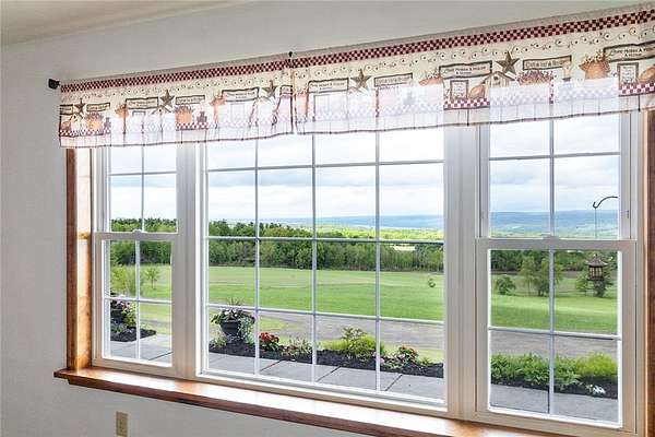 If you've been dreaming of wide-open skies, sweeping Seneca Lake views, and total privacy-this is it. Nestled at the end of a quiet dead-end road, this 9-acre off-grid oasis offers breathtaking panoramic vistas that must be seen to be believed. Whether you're watching the sunrise from your patio or gazing out over miles of farmland and water from your kitchen window, this home is a front-row seat to the Finger Lakes' natural beauty. Built in 2016, this 3-bedroom, 1-bath home was designed for sustainable living without sacrificing comfort. The open-concept layout boasts large windows that flood the space with light and showcase the stunning surroundings. A charming attached greenhouse adds a unique touch-perfect for growing, relaxing, or enjoying the outdoors year-round. Convenient in-floor heat, fueled by an on-demand propane furnace, keeps you warm on even the coldest winter days. Fully powered by solar panels with battery storage and a backup generator capable of running the entire house and garage/shop, you'll enjoy energy independence and peace of mind-no expensive electric bills! A 30x30 detached garage/shop provides ample space for vehicles, equipment, or creative projects. Located just under 10 miles from Watkins Glen and surrounded by farmland, this property offers easy access to local wineries, breweries, and distilleries-yet feels like a secluded retreat. If you're seeking a scenic escape, this property is a rare gem. Come experience the views in person-pictures simply can't do it justice!