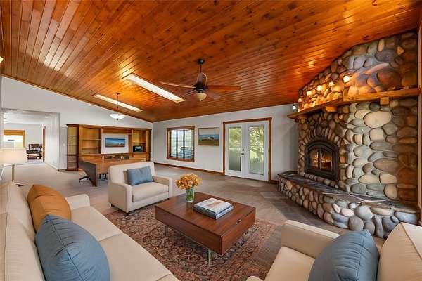 If breathtaking views, expansive living space, and endless versatility are at the top of your wish list, this extraordinary 14-acre irrigated estate is your dream come true. Perfectly situated between Missoula and Polson, this property offers a rare opportunity to own a true slice of Montana paradise. Spanning nearly 7,000 square feet, the home boasts 7 bedrooms and 6 bathrooms, including two luxurious primary suites with spa-like baths, jetted tubs, walk-in showers, and oversized closets-all with unobstructed panoramic views of the Mission Mountains. The heart of the home is an impressive great room with soaring ceilings, a cozy fireplace, and floor-to-ceiling windows that flood the space with natural light and jaw-dropping vistas. Recent upgrades include a remodeled kitchen, new flooring and trim, updated windows, fresh interior paint, a new water heater, and a brand-new pool liner. Step outside and experience the Montana lifestyle at its finest. Enjoy year-round relaxation and entertaining with a 36' x 18' in-ground pool, hot tub, and expansive patios. Two massive, insulated shops-including one over 4,400 square feet-offer ample space for hobbies, equipment, storage, or business use. With irrigated land, horse-ready setup, and space for gardening, beekeeping, or nature exploring, the property is a haven for outdoor enthusiasts. It's also ideal for multi-generational living, a luxury Airbnb, or even a high-end wedding venue. Bonus items that convey with the property include: - Commercial freezer & fridge - One-year-old LG kitchen fridge - Commercial lawn mower - Irrigation pipes, hoses & two large squirt sprinklers - Brand new pool cleaning robot - Entire workout room (weight station, treadmill, elliptical) - 3 cords of firewood Whether you're seeking a private retreat, a working estate, or a stunning setting for entertaining and income potential, this one-of-a-kind property delivers. Don't miss the chance to make this exceptional Montana estate yours.