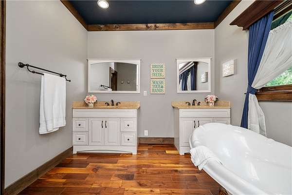 - Bath In Primary Bedroom, Cathedral Ceilings, Ceiling Fans, Dual Sinks, Fireplace, Garden Tub Roman Tub, Granite Counters, High Ceilings, Main Level Primary, Separate Shower, Smooth Ceilings, Tray Ceilings, Vaulted Ceilings, Walk In Closets, Walk In Shower