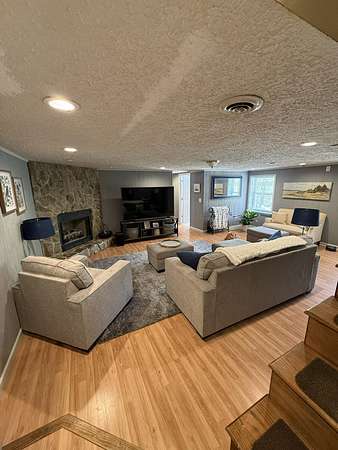 Est $1,884/moSpacious 3BR/2.5BA home on 2.53 acres with an attached 2-car garage, offering peaceful county living with room for gardening, chickens, and more. The kitchen features ample cabinet space and a large pantry. Enjoy two rear decks--one off the kitchen with stair access and a private deck off the primary bedroom--plus a covered patio below, perfect for relaxing or entertaining. The finished lower level includes a large den with gas fireplace, laundry room, and a versatile bonus space ideal for an office or entertainment area. Basement half bath is plumbed for a future shower or tub. Updates include Roof (2019), HVAC (2019), and Hot Water Heater (2022).