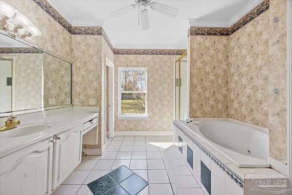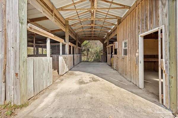 Located in the highly sought-after Meander Farm Estates, this beautiful four-bedroom, three-and-a-half-bath home sits on just over 4 acres of peaceful countryside and offers a rare opportunity to own acreage in one of Cantonment's most desirable neighborhoods. The property features a horse stable and barn with a pasture that could be cleared to fulfill your equestrian dreams. The property also features a screened-in pool and patio a perfect place for outdoor living and entertaining. Inside, you'll find a main-floor primary suite, a spacious kitchen, and a welcoming living area with seamless indoor-outdoor flow. The roof was replaced in 2021 & the HVAC (3 systems) were replaced in 2025 leaving cosmetic touches to make it your own. With its acreage, prime location, and family-friendly layout, this home combines country charm with incredible potential -- ready to be transformed into your dream residence.