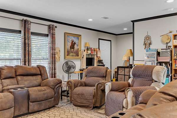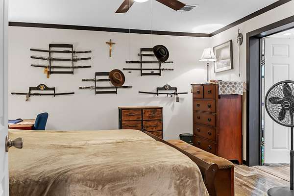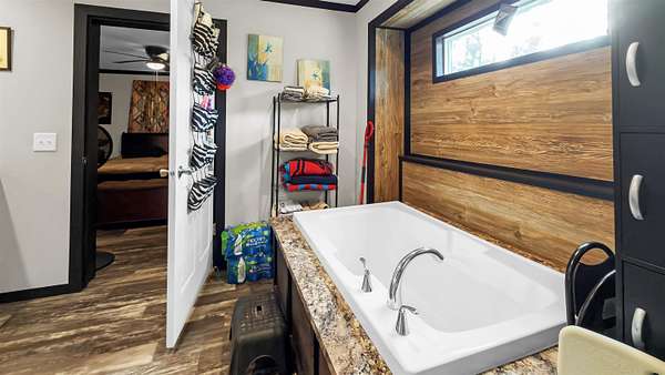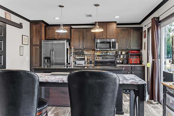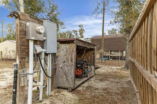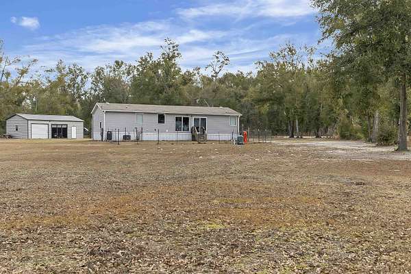 Welcome to this beautifully maintained 2019-built home offering 1,512 sq. ft. of modern living on a private 2.02-acre fenced property tucked away on a quiet street. Designed for comfort, functionality, and peace of mind, this home is wired for a generator and storm-ready, making it ideal for Florida living. Inside, you'll find modern finishes throughout, a bright open layout, and a stunning kitchen with island that flows perfectly for everyday living or entertaining. The spacious laundry room adds convenience, while the primary suite features a separate shower and jet-style soaking tub for a true retreat experience. Step through the back patio door and enjoy serene outdoor views and a large backyard perfect for family gatherings. The property also includes a large wired workshop, ideal for hobbies, storage, or a home business. There is also plenty of space to park your RV as well as a designated area designed for you to hook up and park your RV. A gated driveway, fully fenced yard, and handicap-accessible ramp provide both security and accessibility. Additional features include a moisture barrier system with permanent attachments already in place underneath, reflecting the home's excellent upkeep and attention to detail. The washer, dryer, is included as well with all of the other kitchen appliances. Private, modern, and move-in ready-this is a rare opportunity to enjoy space, comfort, and long-term reliability all in one property.
