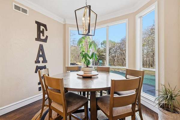 Situated on 1.9 wooded acres in prestigious Shadow Wood Estates, this exceptional Argyle estate offers luxury living within highly sought-after Argyle ISD, feeding to Hilltop Elementary. Spanning 4,336 square feet, the home features 4 bedrooms, 5 bathrooms, a media room, and a spacious playroom, designed for both elegant entertaining and comfortable everyday living.