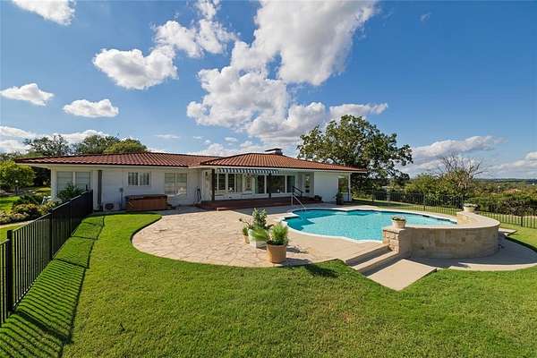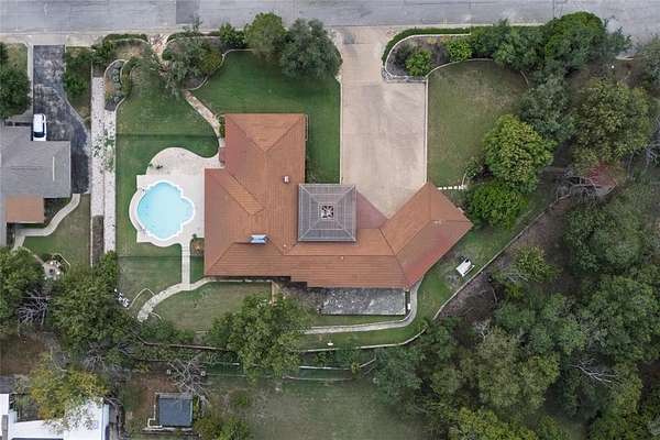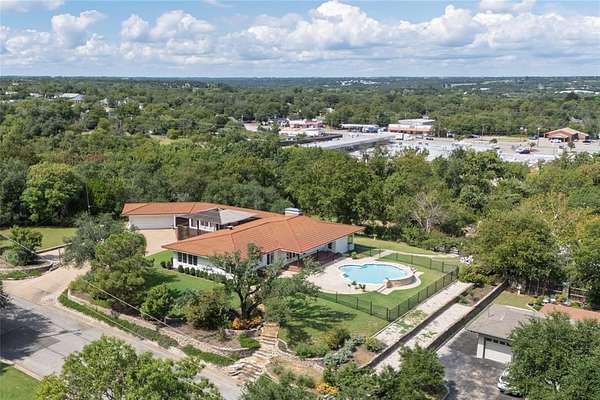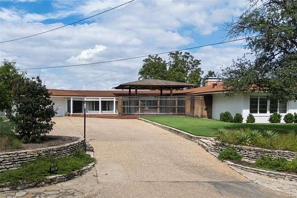 One of the most Exquisite Home in Weatherford that sits high on a quiet cul-de-sac in the heart of the Weatherford Historical district and it borders land on the National Historical Award, Chandor Gardens Estate to the West. This 2.6 acre estate offers all you ever dreamed about. Architecturally designed and an award winning Mid Modern Century with a fabulous 480 square foot wine cellar and a 5 year old gunnite pool awaits the right family. This home known as the James and Dottie Doss home has three bedrooms with a study, living room, dining room and den on one floor for the person who wants the best and appreciates privacy and detail. The kitchen and primary baths were upgraded within the last 10 years, the wood floors in the last 5 years and many stationary Pella windows for the incredible view of the city. There is a custom pergola in the woods to the West along with metal fencing. Sprinkler systems for a beautiful lawn and vintage stone walls and walkways for the discriminating tastes. The Santa Barbara inspired home is one of a kind in the Texas community and the stunning custom roof sets it apart. Just blocks away from two city parks, pickleball courts, library and Elementary and Middle Schools. Enjoy walking to the historic square for dining, shopping, churches and entertainment. This is a rare find and only 24 minutes to Fort Worth and 60 minutes to DFW International Airport and 65 minutes to Love Field and world renown UT Southwestern Medical School and Hospital in Dallas.