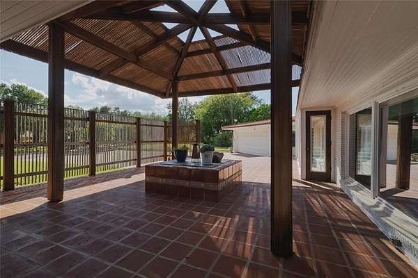 - Awning(s), Covered Patio/Porch, Fence, Lighting
