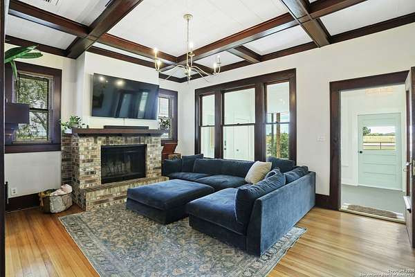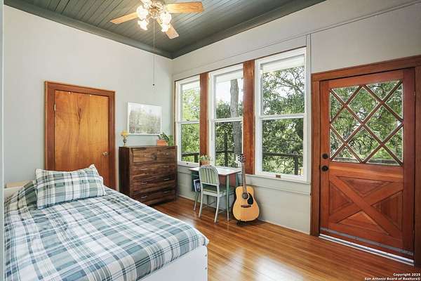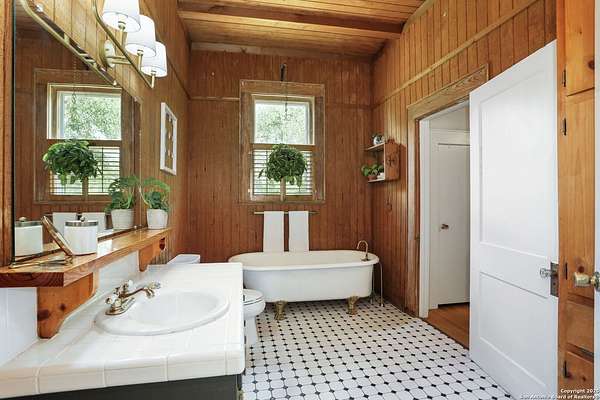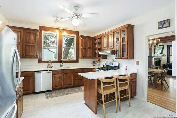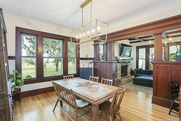 Nestled on over 2.6 acres in the peaceful countryside of Marion, TX, 6160 FM 2538 offers a truly unique blend of rural tranquility, historic character, and modern upgrades. This beautifully maintained 3 bedroom, 2bathroom home showcases an open concept layout with abundant natural light, stylish finishes, and authentic 1920s craftsmanship rarely found today. Originally constructed in the 1920s and relocated from Hemlock Street in downtown San Antonio during the 1940s, the home proudly features restored longleaf pine hardwood floors, original wavy pane antique glass windows with storm protection, and durable 12inch tongue and groove wood plank construction. The master bedroom displays the stamped original wood ceiling from the Petrich Saur Lumber Co., a testament to its architectural legacy. Custom Craftsman style built-ins, rich wood trim, and period accurate details add timeless warmth to the living and dining spaces. A thoughtful and extensive renovation, with an estimated investment of approximately $145,800, has modernized this historic treasure while preserving its character. Highlights include James Hardie fiber cement siding with exterior insulation and warranties, a covered 11' x 28' front porch, brick skirting, and a 22' automatic entry gate with secondary manual gate and metal fencing for enhanced security. Energy. efficient upgrades such as open cell attic spray foam insulation, PEX plumbing, UVb locking windows, and a 9 GPM tankless water heater provide comfort and peace of mind. The bathrooms, kitchen, and interior finishes have all been refreshed, complemented by a professionally serviced fireplace and beautifully restored original ceilings, walls, and woodwork. Beyond the home, a spacious 1,200 square foot workshop with full power and a 50 amp RV hookup is ready to support hobbies, equipment, or more serious projects. The acreage includes over 300 feet of private, springfed Cibolo Creek frontage with deeded water rights to the creek's centerline - perfect for fishing, swimming, kayaking, or simply relaxing by the water. Per the sellers, there are no restrictions on the property, along with the ability to add multiple homes if desired. This offers incredible flexibility for multigenerational living, investment opportunities, or agricultural use. Surrounded by mature trees, wideopen fields, and panoramic views, this property promises unmatched privacy and inspiring natural scenery. Conveniently located near Seguin, San Antonio, and major highways, 6160 FM 2538 combines country serenity with modern accessibility. More than just a house, it is a rare piece of South Texas history - carefully restored, thoughtfully upgraded, and ready to deliver a lifestyle of peace, possibility, and timeless charm.