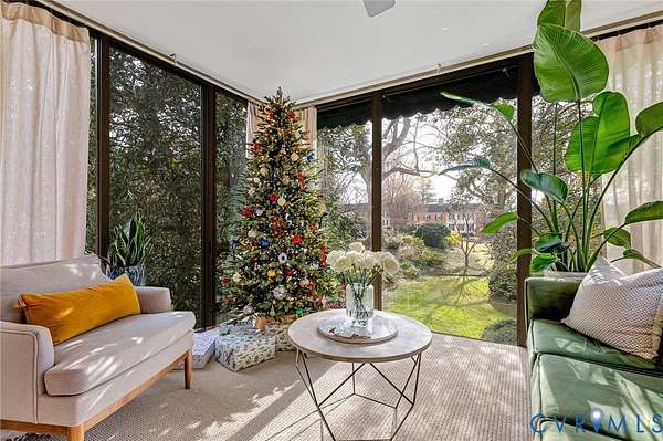 Welcome to this beautifully updated 3-bedroom, 2-bath home offering 1,810 square feet in the gated cooperative community of Chatham Square. Enjoy maintenance-free living in a peaceful 10.12-acre setting with illuminated brick walkways, a scenic courtyard with water feature, and 24-hour security, all conveniently located near downtown, shopping, highways, and entertainment. There are three full-time grounds and maintenance crew on-site 8AM-4PM Monday to Friday. They provide services such as trash pickup, landscaping, snow shoveling, HVAC filter changes and more. The interior features refinished hardwood floors, crown moulding, chair rails, fresh paint, wood blinds, newer vinyl windows, and recessed lighting on dimmers throughout. The living room is highlighted by an elegant Adam's style ornamental fireplace mantel with gas logs and large triple windows. The open dining room offers custom display bookcases and a chandelier, seamlessly connecting to the kitchen and Florida room. The fully renovated kitchen (2023) was taken down to the studs and includes quartz countertops, tile backsplash, GE Profile stainless steel appliances, LVP floors, a farmhouse sink, custom cabinetry with pullout drawers and soft close hinges, and garden windows with views of a cherry blossom tree. The Florida room provides floor-to-ceiling windows, newer carpet, and panoramic views of the lush courtyard. The primary bedroom features fresh paint, new fan lighting, and a fully remodeled en-suite bath (2023). A versatile second bedroom offers built-in cabinetry and office space, while the third bedroom provides added privacy. Additional highlights include a covered front porch with arched columns and herringbone brick flooring, a shared concrete patio, excellent storage including attic and private temperature-controlled storage, a new HVAC system with ductwork (2024), and a tankless natural gas water heater (2024).