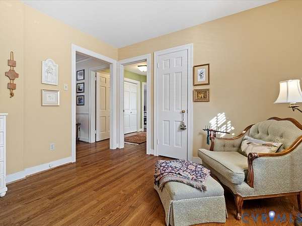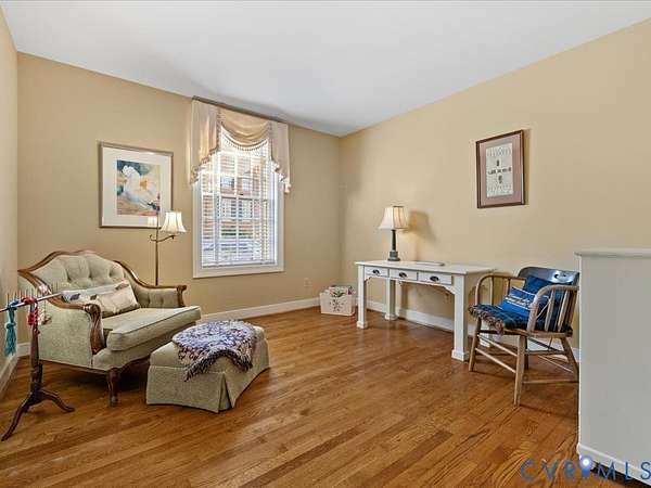 Rare FIRST FLOOR, one-level living in a quiet, private setting within Chatham Square. This spacious unit offers easy access with no interior stairs and a flexible floor plan ideal for a lock-and-leave lifestyle. The light-filled living room features a gas fireplace and flows into the dining area. Enjoy a good book or chat with a friend in the carpeted sunroom with abundant windows and a door leading to the peaceful, park-like backyard. The home features three bedrooms, one currently used as a study, along with two full baths and one half bath. Hardwood floors run throughout the main living areas and bedrooms. The kitchen offers Corian countertops, generous cabinet storage, and space for a small table. Chatham Square is a gated cooperative community set on over 10 acres of beautifully maintained grounds with stately trees, private roads, and charming courtyards. Community amenities include 24-hour on-site security, exterior and grounds maintenance, and a serene setting just across the street from the University of Richmond, Country Club of Virginia, dining, shopping, and neighborhood favorites.