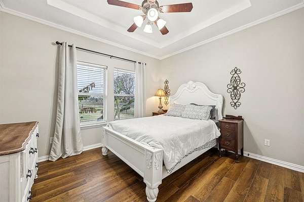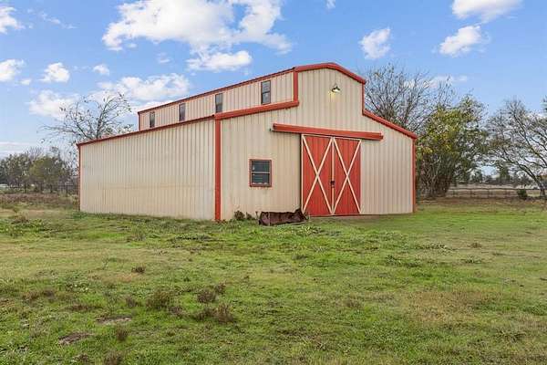 Just outside the hustle and bustle of Dallas, you'll find your own piece of Texas. Nearly 7 acres of rolling pastures, open skies, and quiet so deep you can hear the wind whispering through the grass. This custom home is built for country living, with space to roam, room for your passions, and every detail designed for comfort. Inside, warm hardwood floors lead through the open, flowing living and kitchen areas, seamlessly connected and perfect for gatherings with a walk-in pantry and two doors opening directly to your backyard oasis. A dedicated home office, a utility room with its own entrance and sink, and flexible rooms--including a 4th bedroom for guests, crafts, or media--round out the thoughtful layout, while the primary retreat offers a cozy fireplace and peaceful sanctuary after a full day outdoors. Outside, the lifestyle truly comes alive. Your backyard is a private retreat, fully fenced for peace of mind. The 3-stall horse barn--with its own bathroom, separate electric, and septic--is ready for your horses or a potential income opportunity. Step onto the covered patio and full outdoor kitchen, where pastures stretch to the horizon, a serene pond mirrors the sky, and fields glow in golden sunset light--perfect for entertaining or relaxing. An oversized 3-car garage, chicken coop, storage shed, RV hookup, and multiple gated entrances make country living effortless and versatile. AG-eligible and HOA-free, this is a place to live life your way--close enough to Dallas for convenience, yet far enough to enjoy quiet country charm with nearby schools and easy highway access. Wide-open skies. Rolling pastures. Quiet beauty. Freedom. This is Texas living, exactly as you imagined it.
