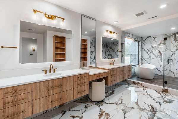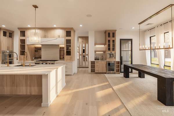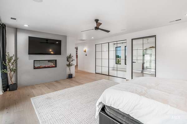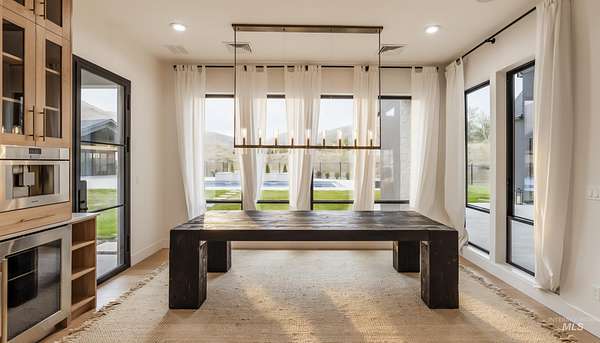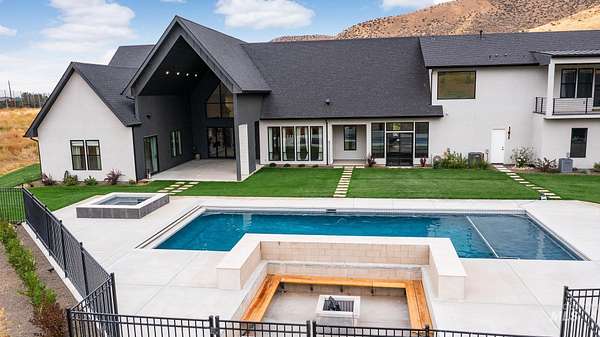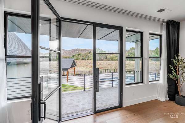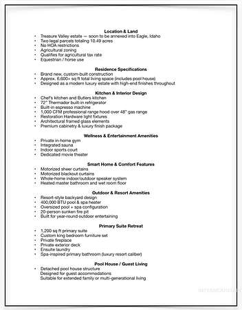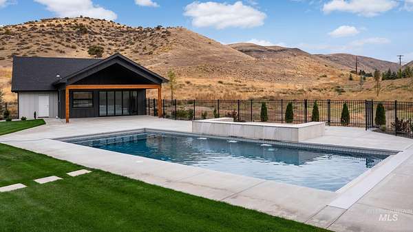 This brand new, custom-built masterpiece-a true gem of the Treasure Valley is soon to be annexed into Eagle. Sitting on two parcels totaling 10.49 acres with no HOA and agricultural zoning, this property benefits from ag-tax rate and allows for equestrian use. With over 6,600 sqft of meticulously designed living space-including a pool house-this property defines modern luxury. No expense was spared in the creation of this extraordinary home. Highlights include: Chef's kitchen featuring a 72" Thermador built-in refrigerator, built-in espresso machine, 1,000 CFM range hood, Restoration Hardware light fixtures and architectural framed glass throughout. Indoor wellness and entertainment amenities such as a gym with sauna, indoor sports court, and a private movie theater. Smart, modern comforts throughout: motorized sheer and blackout curtains, indoor/outdoor speaker system, heated bathroom floors, and premium high-end furnishings. Resort-style backyard with a 400,000 BTU pool/spa heater and 20-person sunken fire pit-perfect for year-round enjoyment. The 1200ft primary suite is a private sanctuary, featuring a custom king bedroom set, fireplace, private deck, ensuite laundry, and a spa-inspired bathroom that rivals 5-star resorts. Once finished, the pool house can accommodate guests or extended family with ease-ideal for entertaining or multi-generational living! Don't miss out! BTVAI.