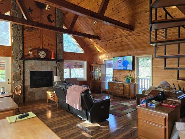 Est $2,299/moNew Price: $423,700! Ultimate Privacy! Nature Lover's Dream! Walking or Quad Trails through many trees. Wildlife galore, Stocked Fishing Pond, all on 11.59 Wooded Acres. Country Living with a Secluded Location. Includes A Custom Built Rustic 3 BR, 3 Bath 1.5 Story home with Metal Roof (2018) exposed wood beams, floor to ceiling gas fireplace, fenced rear yard, wood decking and Above Ground Pool. Easy to enjoy the changing Seasons here. Schedule your appointment today! Easy to show-Owner is transferring.