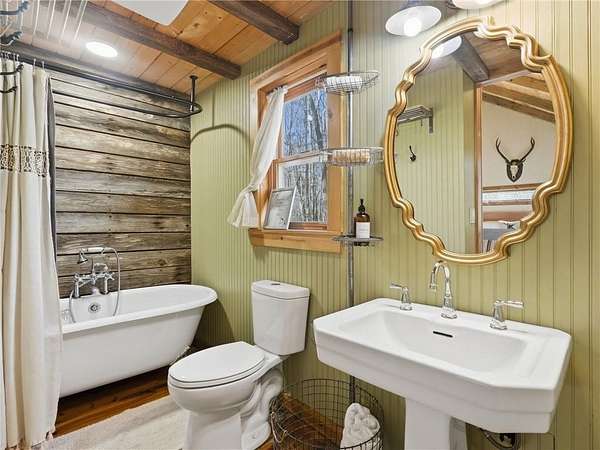 Welcome to your own private slice of country paradise in the heart of Canton! This beautifully remodeled 3 bedroom, 2 bathroom ranch home sits on a fully fenced 9-acre property and offers the rare combination of peaceful acreage living, modern updates, and proven income potential with a thriving guest cottage. Renovated in 2022, the main home features approximately 1,950 square feet with an open concept floor plan highlighted by soaring vaulted ceilings and stunning 12-inch wide plank hardwood floors throughout the main living spaces. The spacious kitchen was designed with both beauty and function in mind, showcasing soapstone countertops and backsplash, a custom island, and a ILVE Italian 48" range from Italy-perfect for entertaining or everyday living. Two of the three bedrooms are designed as private suite-style retreats, offering flexibility and comfort for owners and guests alike. Major systems have been thoughtfully maintained with HVAC replaced just 3 years ago and the hot water heater only 6 years old, while the exterior siding and trim were freshly repainted in 2020. The full unfinished basement provides abundant storage or the perfect opportunity to expand and bring your own vision to life. Adding incredible value to the property is the stand-alone guest cottage, built in 2020 and operating as a highly successful Airbnb with 155+ outstanding reviews-creating consistent passive income. This charming 1 bedroom, 1 bathroom cabin features hardwood floors, a kitchenette, and a warm, thoughtfully designed interior. The open floor plan boasts cathedral ceilings crafted from Georgia pine, cedar, and reclaimed wood from the original century-old barn that once stood on the homestead, blending history with modern comfort. Guests love relaxing by the firepit, enjoying the peaceful views, and unplugging in the quiet beauty of Canton's horse country while still being conveniently located just 10 minutes from grocery stores, restaurants, and everyday conveniences. With open pasture, usable acreage, a sought-after ranch layout, income-producing guest home, and a prime location just minutes from Milton and Alpharetta, this one-of-a-kind property truly checks every box. Enjoy the privacy of country living while remaining close to shopping, dining, and major interstates that can take you anywhere you need to go. Properties like this rarely come available-schedule your showing today and experience everything this incredible estate has to offer!