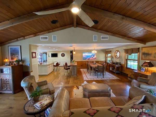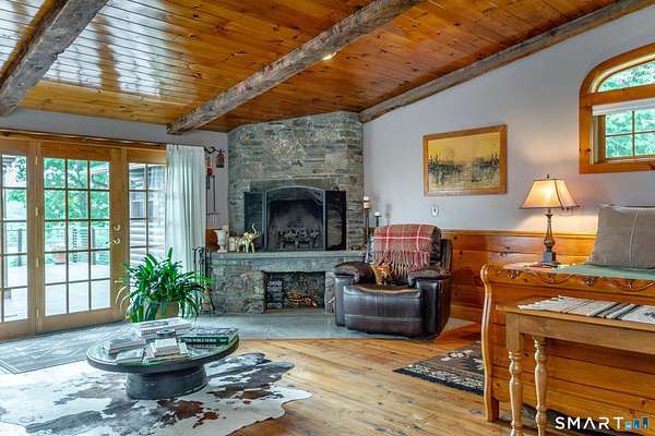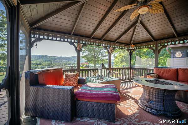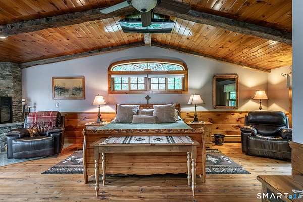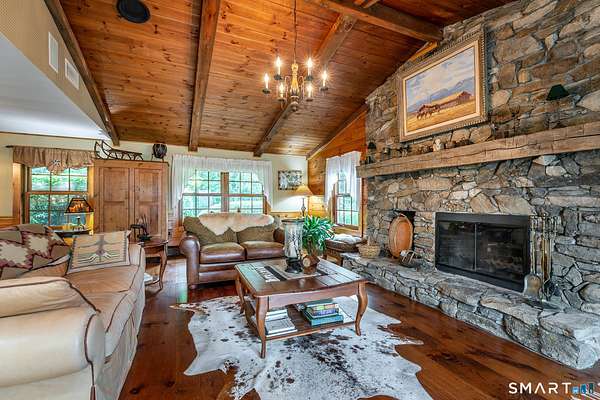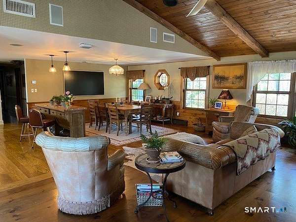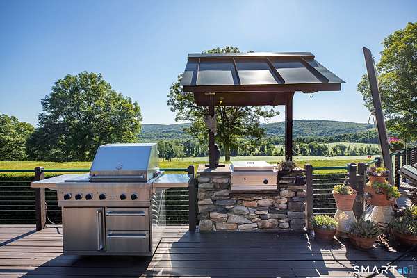 Experience this stunning sanctuary where rustic charm meets modern luxury on over 19 meticulously manicured acres of pure magic! This elevated 3-bedroom, 3-bath masterpiece captures your heart the moment you arrive, drawing you toward an expansive wood deck and a stunning screened-in gazebo with a built-in fire-pit - the ultimate "entertainment perch" for soaking in breathtaking, panoramic valley views. Inside, the home glows with natural light, featuring soaring vaulted ceilings, a gourmet chef's kitchen with high-end appliances, and a primary suite that serves as a true retreat with its own stone fireplace and oversized closet. A newly reconfigured second bedroom with an adjacent study provides the perfect versatile workspace. The lower level adds even more flair with a sleek kitchenette, media room, a full bath and a new third bedroom. The equestrian facilities includes a 4-stall barn, arena, hay barn, and fabulous riding trails, catering to every horse lover's dream. 3-car heated garage and a powerful 45KW generator. This impeccably maintained estate isn't just a home, it is a move-in-ready lifestyle that is utterly magical. Minutes to the villages of Millerton and Pine Plains. 2 hours to NYC.
