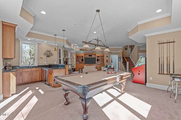 - Bar, Bookcases, Breakfast Bar, Built-In Features, Ceiling Fan(s), Central Vacuum, Crown Molding, Dry Bar, Eat-In Kitchen, Entrance Foyer, Granite Counters, High Ceilings, High Speed Internet, Pantry, Primary Downstairs, Smart Thermostat, Smooth Ceilings, Walk-In Closet(s), Walk-In Shower, Wet Bar