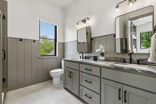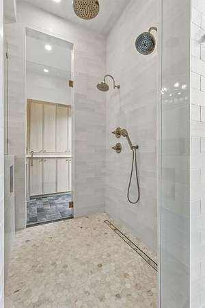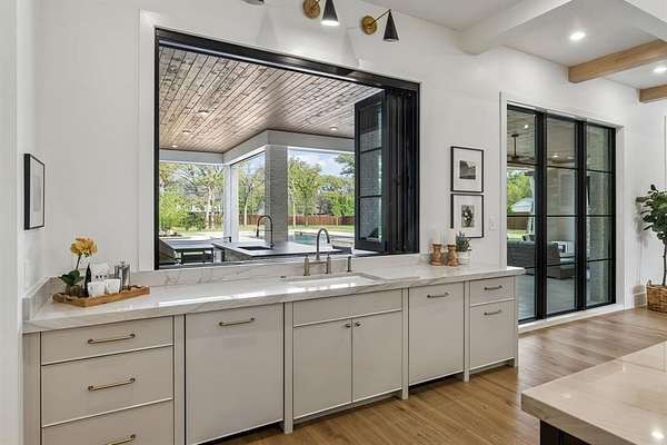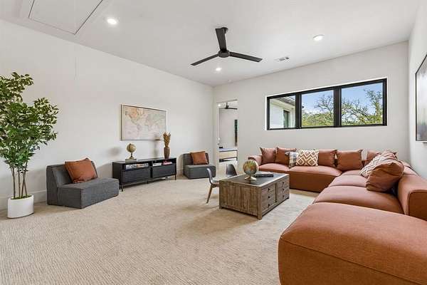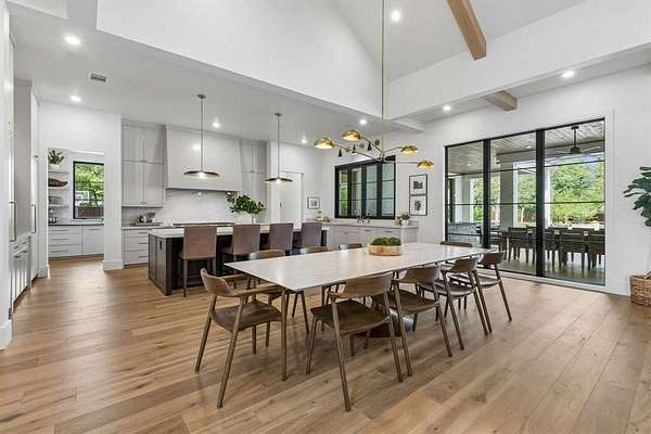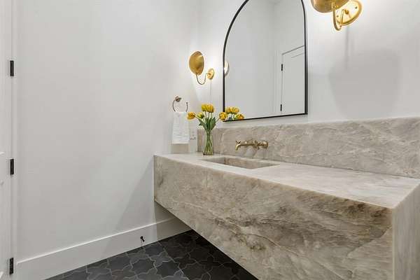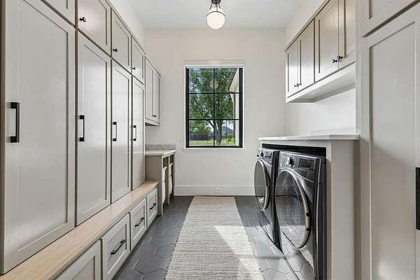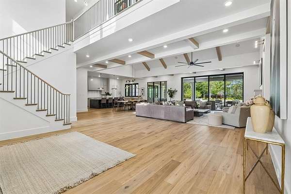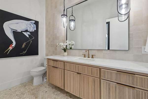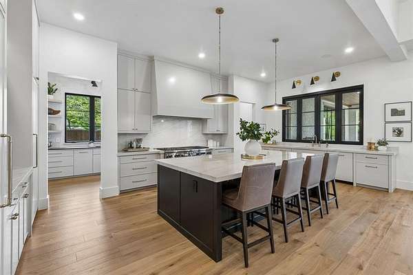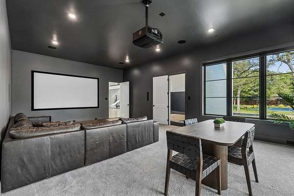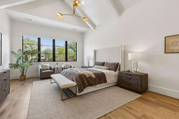 The primary retreat serves as a true sanctuary, featuring pitched beam ceiling, a spa-like bath with a Toto Neorest NX1 toliet, and a massive walk-in closet with a dedicated washer and dryer. Designed for world-class entertainment, the home includes a first-floor game and media room with a 12.1 in-wall surround sound system, Sonos audio, and hardwired Lutron lighting and shades.