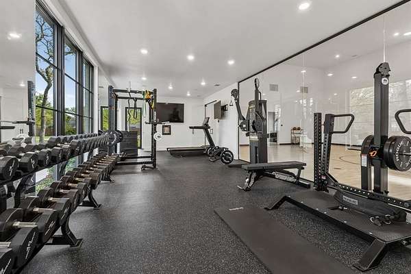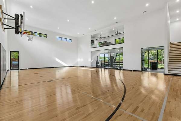 Uniquely designed for the ultimate athlete, the dedicated sports wing is virtually impossible to replicate. This massive complex includes an indoor Olympic trampoline room with a dome structure and shatterproof glass, a professional half-court basketball court with college-level maple flooring, and a state-of-the-art gym with floor-to-ceiling backyard views. For recovery and outdoor play, the estate features a custom-built Finnish sauna with WiFi-controlled heating and a full-size outdoor pickleball court equipped with a 3-light LED system for night games. With over 11,000 square feet,7 bedrooms, 9.2 bathrooms, and a 5-car garage, every detail of this estate has been mastered to provide a life of privacy, wellness, and effortless luxury.
