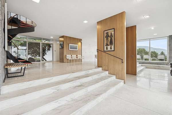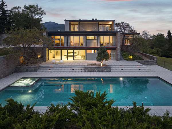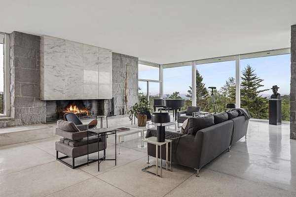 Welcome to 617 Mountain Road--an extraordinary mid-century modern estate set on 159 acres with panoramic views that will leave you breathless. Designed by acclaimed New England architect Henry B. Hoover, this 5800+ SF residence is a private sanctuary commanding sweeping vistas of Mount Monadnock's dramatic peak, the rolling hills of Vermont, and many peaks in Massachusetts. Built in the 1950s, the home reflects understated elegance and intentional design. Hoover, known for his collaboration with landscape architect Fletcher Steele, blended structure and site with remarkable sensitivity, exemplifying the best of regional modernism--timeless, livable, and deeply connected to nature. Inside, floor-to-ceiling glass floods the rooms with natural light and perfectly frames the mountain views. Six spacious bedrooms and five baths accompany expansive gathering spaces, a chef's kitchen, and seamless indoor-outdoor flow. The layout invites both quiet retreat and effortless entertaining. Resort-style amenities include a serene pool, tennis court, elevated view deck, and miles of private trails for hiking and skiing. The walk-out lower level features a gym or bonus room and a climate-controlled wine cellar. An attached two-car garage completes the property. Tucked away in complete seclusion, this once-in-a-generation estate offers limitless possibilities--as a private residence, retreat compound, or luxury rental. Experience New England at its most magnificent.