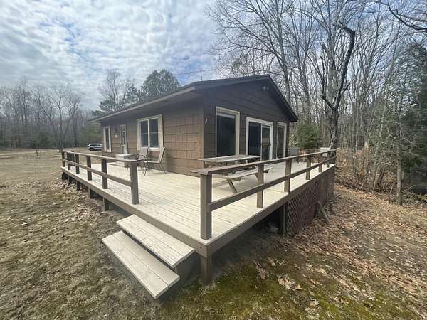 Own your own slice of paradise with this charming cottage tucked away on a secluded setting in Newaygo County. Located at the end of a quiet dirt road, this peaceful retreat offers unmatched privacy with the soothing sounds of nature and the White River flowing just beyond your backyard. Inside, you'll find a welcoming open floor plan featuring 2 bedrooms and 1 full bath, with large windows that frame picturesque waterfront views. Step outside to the spacious wrap-around deck--perfect for morning coffee, morning sunrises, or entertaining guests. Whether you enjoy fishing, kayaking, tubing, or relaxing by the firepit, this property is designed for year-round enjoyment. Ideal as a weekend getaway, short-term rental, or full-time residence, this riverfront gem offers a rare opportunity to embrace Northern Michigan living at its finest. An additional 52.5 acres is available for purchase separately or as part of a package, creating a rare opportunity to own your own private ''Shangri-La''