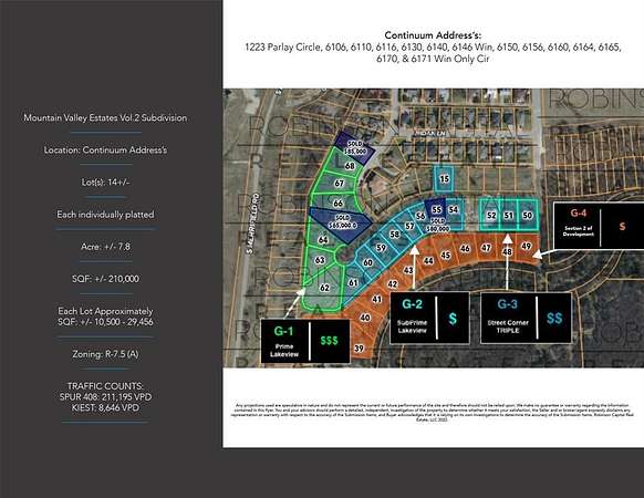 Est $655/moExclusively out of our investment sales division, land for sale. Please c0ntact broker agnt for marketing memorandum. Any information used to advertise this listing is speculative in nature we make no guarantee or warranty regarding the information contained. Broker, agnt & seller expressly disclaim any warranty with respect to the accuracy of the submission items. Buyer & buyer's agnt acknowledges they are relying on their own investigation & should perform a detailed independent analysis of the property to determine if it meets your satisfaction & accuracy of MLS data fields. Robinson Capital Real Estate, LLC 2023.