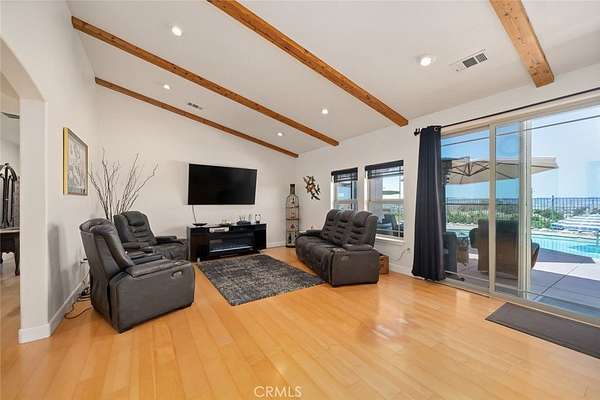 Set in prestigious Independence Ranch, this 10-acre vineyard estate blends luxury, tranquility, and winemaking excellence. Rolling hills and breathtaking 360-degree views create a serene, inspiring setting. This custom-built, single-level home spans 3,500+ sq. ft., with four bedrooms and three and a half bathrooms, designed for refined living, gatherings, and ease of entertaining. The living room, anchored by an Artisan FPX gas fireplace, offers warmth and sophistication. The open-concept gourmet kitchen boasts exposed wood beams, granite countertops, a large island, and ample storage, open to the secondary living area. The plunge or lap pool is located right outside of the primary suite and secondary living area. The private primary suite offers dual walk-in closets, a spa-like ensuite with a soaking tub, and a walk-in shower. Two bathrooms feature modern, doorless walk-in showers, adding to the home's sleek aesthetic.
