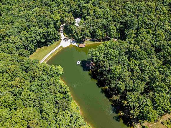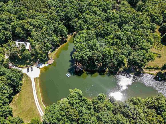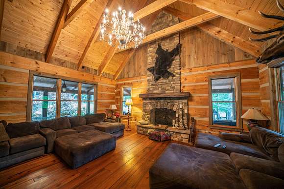 Custom built luxury log home constructed on a conventional foundation and features a basement, barn has stalls, tack room and basement, great acreage, nice size lake estimated at about 3 acres +/-, great privacy. Wide wrap around trex deck porch with tempered glass panels so the view is never blocked and offers views around the entire picturesque preserve. Much attention was given to details. Wood floors,woodburning fireplace, 3 bedrooms, luxury masterbedroom and bath on first floor, bedrooms 2 and 3 on 2nd floor, kitchen has farmhouse sink, island, gas cooking, beautiful cabinets, granite tops. Walk down to the dock and cast a line or just sit and enjoy the sound of the water. Well fed bubbling brook that can be turned on for ambiance that flows down the hill beside the home into the lake. This property is the perfect property for every day living or for a retreat get away when the city life needs to be left behind. Just so much to offer!