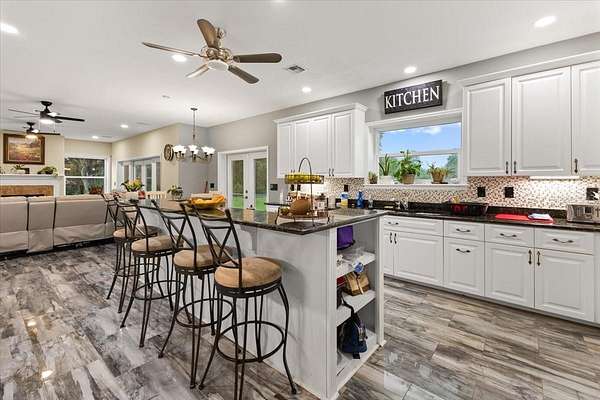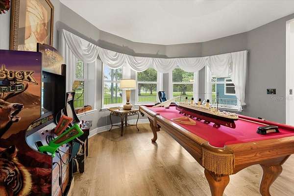 This property also offers a side-load oversized three-car garage, a circular drive with extended parking pad, and beautifully expansive grounds. From its sweeping wraparound porch to the serene lanai, this estate exemplifies indoor-outdoor living at its finest.