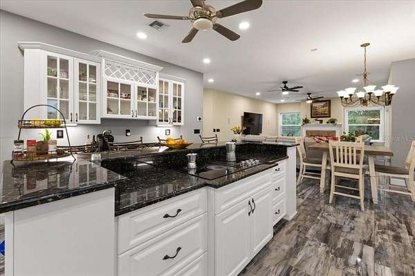 - Attic, Built-In Features, Cathedral Ceiling(s), Ceiling Fans(s), Crown Molding, Eat-In Kitchen, High Ceilings, Kitchen/Family Room Combo, Stone Counters, Vaulted Ceiling(s), Walk-In Closet(s), Window Treatments