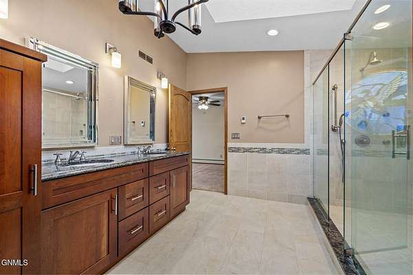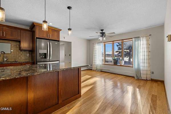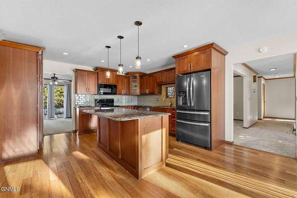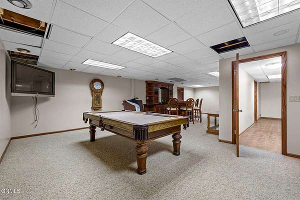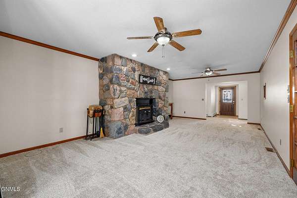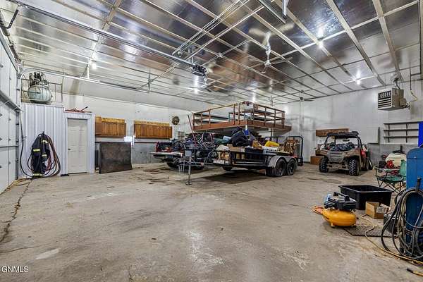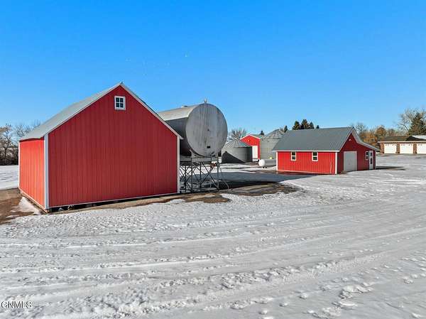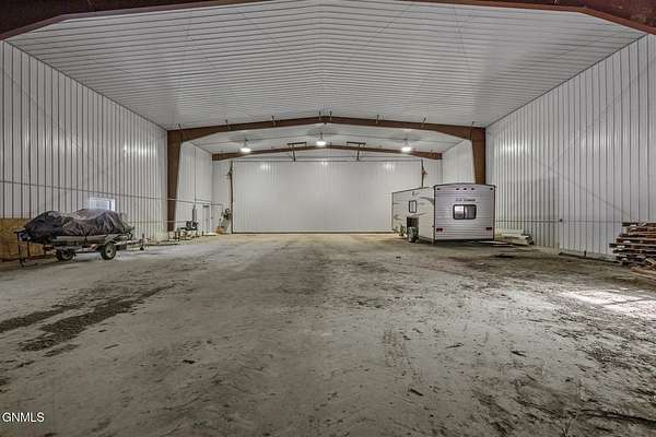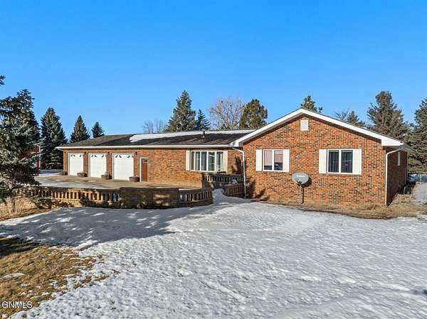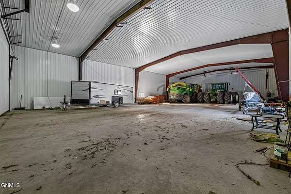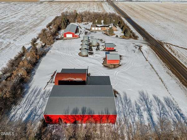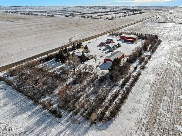 Set on 7.97 peaceful acres, this one-owner ranch-style home offers the perfect blend of space, comfort, and functionality in a serene western North Dakota setting. With 3 bedrooms and 3 bathrooms on the main level, including a spacious primary suite, this home is thoughtfully designed for main-floor living, complete with main floor laundry and generous living spaces. The heart of the home features a well-appointed kitchen with bamboo flooring, ample cabinetry, and seamless flow into the dining and living areas, ideal for both everyday living and entertaining. A truly special feature is the custom stone fireplace, built with rocks hand-selected from the farmstead itself, adding a meaningful connection to the land and the home's history. The fully finished basement expands the living space even further, offering a 4th non-conforming bedroom, with the potential to add a 5th conforming bedroom if desired. A large bonus/recreation area provides the perfect setup for entertaining, movie nights, or hosting friends, completed with a pool table and wet bar. Outside, enjoy a covered patio with a built-in outdoor grill, overlooking a fenced backyard surrounded by mature trees that provide privacy and excellent wind protection. Wide-open skies frame unforgettable western North Dakota sunrises and sunsets, creating a peaceful, retreat-like atmosphere. For those needing serious workspace or storage, the property includes an impressive 60x100 steel shop with a 48' door, a heated and partially finished 4,368 sq ft shop with bathroom, a quonset, additional outbuilding with fuel tank, five grain bins, and a 28x24 detached garage. Both shops feature concrete floors, and the attached garage includes heated floors, as do select bathroom areas in the home. This rare acreage offers endless possibilities, whether for hobby farming, personal business use, or simply enjoying the quiet beauty of country living, while still providing comfort, quality, and pride of ownership throughout.