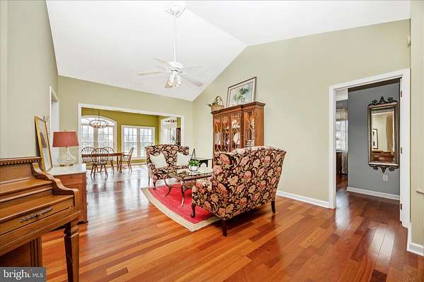 Experience refined one-level living at 6181 Challedon Circle in the Challedon golf course community. Offering nearly 3,800 square feet of beautifully designed living space, this home features 4 bedrooms, 3 full baths, pool, hot tub, fully fenced yard, and backs to the 8th hole of the golf course. The main level showcases hardwood flooring throughout most of the home, with tile in the sun-filled breakfast room. A welcoming open floor plan begins with the living and dining rooms and flows seamlessly into the spacious family room, where a gas fireplace and a wall of windows frame views of the pool and golf course. The updated kitchen is both stylish and functional, featuring warm wood cabinetry with soft-close drawers, granite countertops, stainless steel appliances, gas cooking, a beautiful backsplash, and an island with seating. The adjacent breakfast room is filled with natural light and opens to the screened rear porch, creating the perfect place to enjoy the peaceful setting. The primary suite also offers access to the screened porch and features two closets plus an updated en-suite bath with a double-sink vanity, tiled shower, soaking tub, and private water closet. On the opposite side of the home are two additional bedrooms, a full bath, laundry area, and mudroom with garage access. The finished walk-out lower level adds exceptional flexibility with a large recreation room ideal for billiards, media, hobbies, crafts, or exercise. This level also includes a fourth bedroom, a full bath, and abundant storage space. Outside, the pool, hot tub, patio, and screened porch create a wonderful setting for relaxing or entertaining. The fenced, level yard backs to the golf course and offers views of open pasture beyond. Conveniently located near downtown Mount Airy shopping and dining, with easy access to I-70. Some updated include - Primary bath remodel 2025; siding replaced 2023; roof replaced 2021; HVAC replaced 2021; pool liner replaced 2024; poo filter replaced 2023; kitchen appliances 2022-2025; Replacement Anderson windows throughout most of the home.