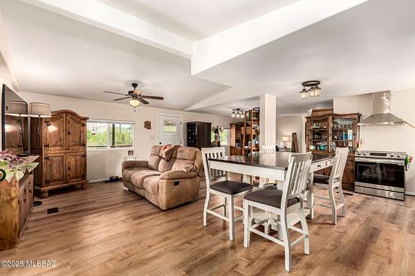 INCREDIBLE MOUNTAIN VIEWS GALORE! Nestled on a 1.63-acre lot, this home perfectly blends style, comfort & scenic beauty! The property greets you with a 2-car garage & an expansive front porch where you can relax & enjoy peaceful days surrounded by nature. Discover an open floor plan filled w/natural light, creating a warm & inviting atmosphere. This property just has a great vibe the minute you set foot on it. The well thought out home renovation gives the home a brand new feeling. Features include rich wood like flooring, ceiling fans & neutral palette that compliments any decor. Cook w/ease in the lovely kitchen, equipped w/glossy stainless steel appliances. Check out the carpeted primary bedroom, offering a private bathroom w/dual vessel sinks. Spacious backyard provides endless possibilities ready for your personal touch, garden, or even future expansion. Don't let this gem slip by! Bring your horses, your toys and enjoy country living at its finest. The home was recently renovated throughout with new flooring, appliances, light & fan fixtures, smooth textured walls. If you want to add a 3rd bedroom there is room to do so. Come take a look!! Picture Rocks offers a wonderful community center with lots of after school activities, a pool/splash pad & sports park. The back 1+ acre is fully fenced. Picture Rocks has been a hidden little gem that is gaining popularity very quickly. No better time than NOW!!!