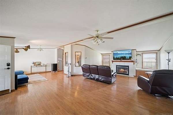 40 acres of cleared pasture land with income potential, featuring a custom-built manufactured home, shop, barn, and multiple ponds. This versatile property is ideal for ranching, hobby farming, or investment use, with yearly hay production providing additional income opportunity. The 4 bedroom, 2 bathroom home offers two living areas, including an added enclosed deck for extra living space, along with granite countertops, a wood-burning fireplace, and a durable metal roof on this 1997 Fleetwood. The property is well-equipped with a 30x40 custom-built 4-car garage/shop complete with a car lift, built-in air compressor, and 220 outlet, making it perfect for mechanics or workshop needs. A 30x90 barn with electric and six bay doors provides ample space for equipment, livestock, or storage, along with an additional storage building. Outdoor features include covered porches, an open deck, and three ponds that enhance both functionality and scenic value. This property offers a rare combination of usable acreage, functional improvements, and income-producing potential, making it an excellent opportunity for buyers seeking space, flexibility, and rural living.